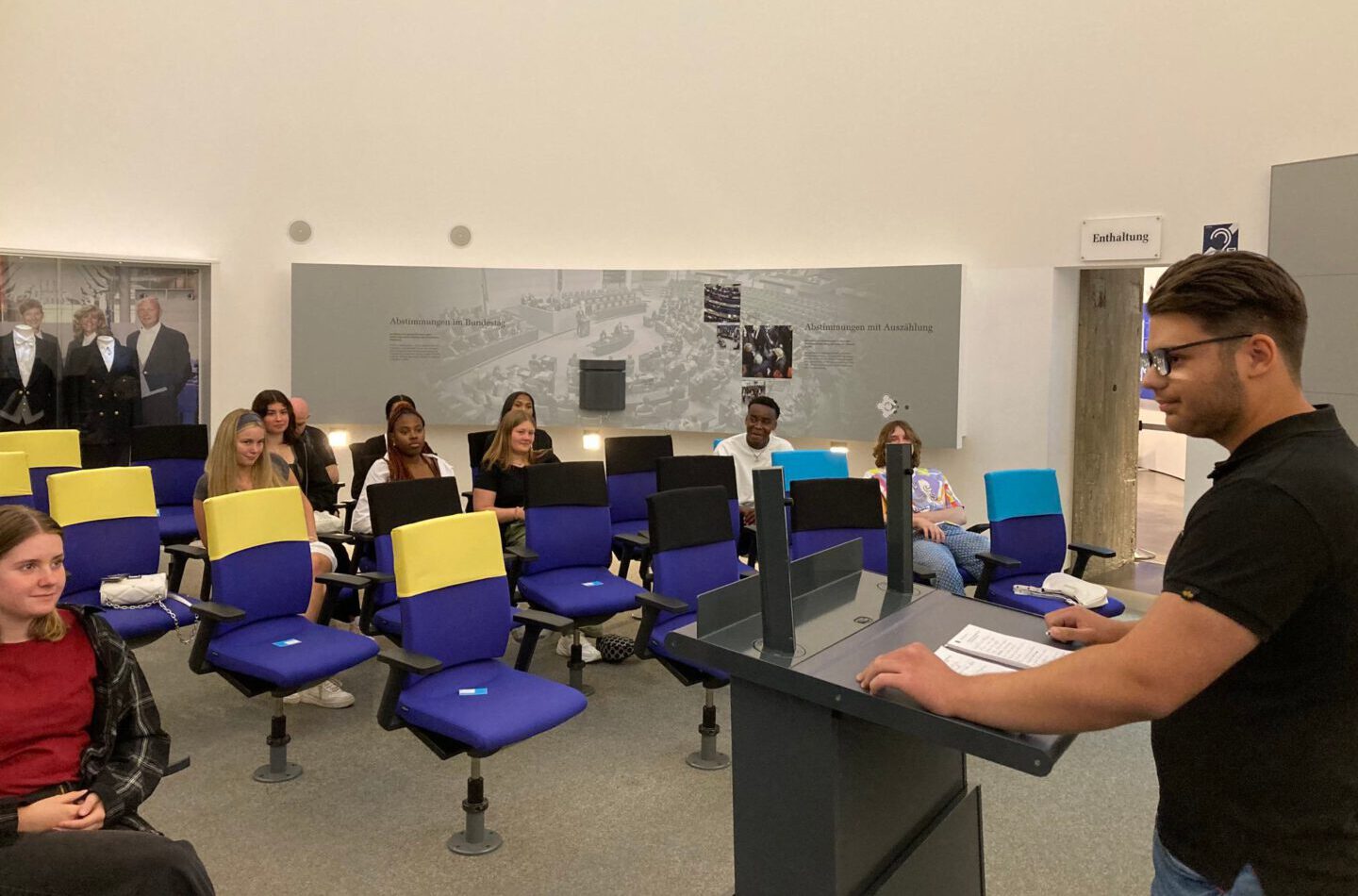Im Anschluss geht es mit einem Rollenspiel zur Strafmündigkeit Jugendlicher im Mini-Plenarsaal weiter und wir freuen uns jetzt schon auf den morgigen Besuch des Kanzleramtes!