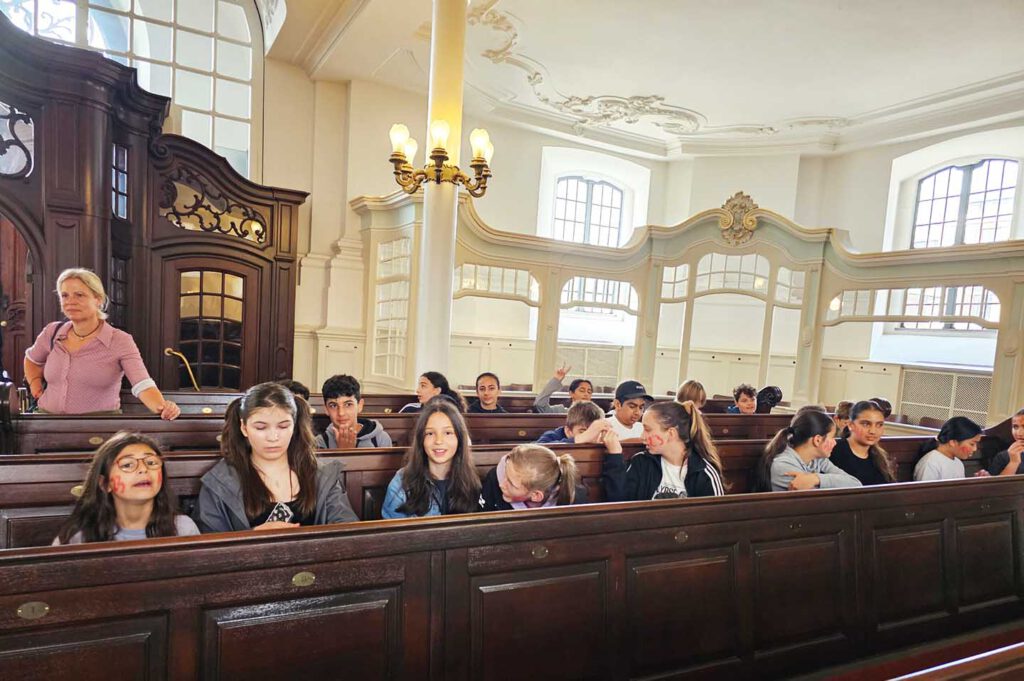 Freitag, den 30. Juni 2023: Die 6C machte sich nach der 1. Stunde begleitet von Frau Lang-Gerdes und Frau Haddorp auf den Weg zum Michel. Nach 45 Minuten S-Bahn-Fahrt und Fußmarsch kamen alle guten Mutes am Michel an. Während sich noch einige die Frage stellten, ob die Zuschauerränge bis in den Kirchturm gehen, genossen andere noch einen Blick auf den Hafen. Im Michel angekommen, nahm die Klasse ihre Plätze in den Kirchbänken ein und bewunderte die Sicht auf die Empore, wo das Orchester schon Platz genommen hatte. Kurz darauf stieg die Aufregung in der Klasse, denn Frau Beilner und der Unterstufenchor mit Eleyna aus der 6C wurden auf der Empore hinter dem Orchester entdeckt. Es wurde wild gewunken und gestrahlt. Kurz darauf begann dann nach einer kurzen Einführung in die Orchesterinstrumente das Musical: Mareike spinnt, in dem es um die Angst vor Spinnen und den Umgang mit Angst ging. Viele viele Chöre aus Grund- und weiterführenden Schulen hatten sich zusammengetan und der Klang war dementsprechend schön. Nach 60 Minuten hatte Mareike ihre Angst vor Spinnen überwunden und die 6C machte sich mit einem kurzen Stop auf dem Spielplatz wieder auf den Weg zur Schule. Es war ein schöner Ausflug!
