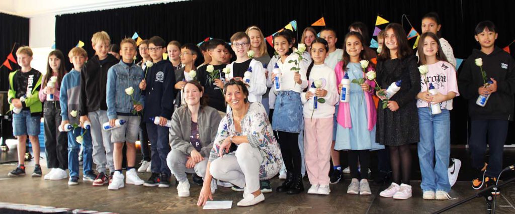 Klasse 5a mit Frau Weiss und Frau Bayersdörfer + Pat:innenKlasse 5b mit Herrn Bendix und Frau Görris + Pat:innenKlasse 5c mit Frau Reif und Frau Ohnesorge + Pat:innenKlasse 5d mit Frau Haddorp und Frau Lindow + Pat:innenKlasse 5e mit Frau Karstädt und Frau Münch + Pat:innen