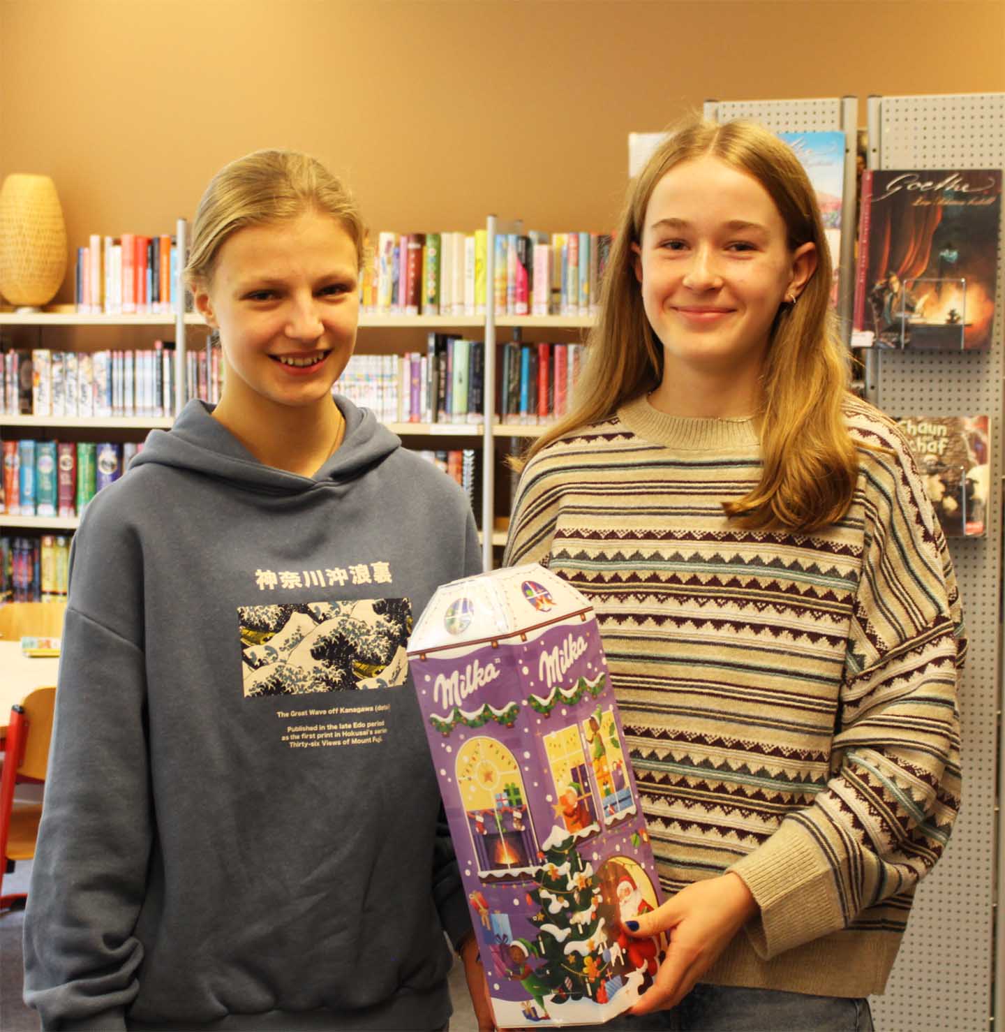 Danke an den Schulverein, der ZWEI riesige Schokoladenadventskalender als Hauptgewinne gesponsert hat. und an Lilian, Dorit und Annelie aus der 8c, die bei der Auswertung der Ergebnisse helfen werden.
