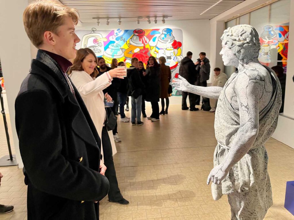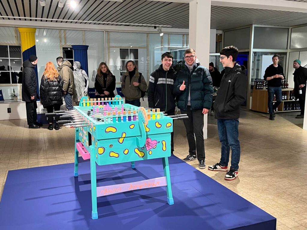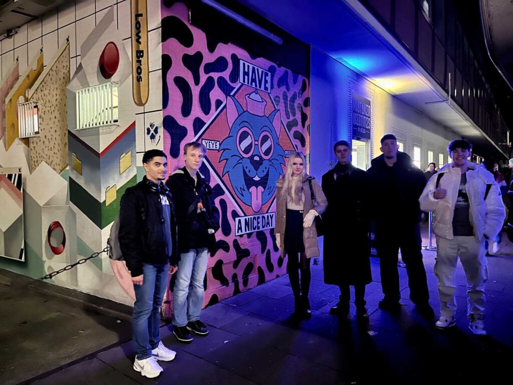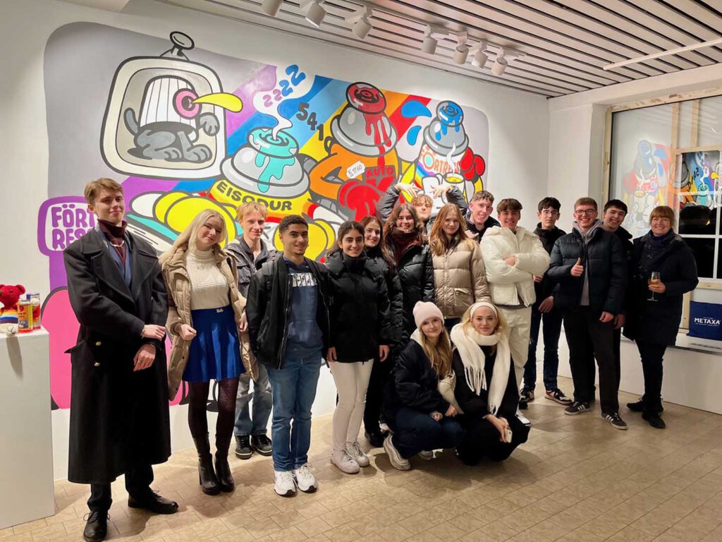 Das große Highlight des Abends stand jedoch noch an! Plötzlich erkannten wir unter den Gästen den berühmten Fußballtrainer Bruno Labbadia, welcher schon ikonische Mannschaften wie den VfB Stuttgart und den HSV trainierte. Es kam ein sehr nettes Gespräch zwischen uns, Frau Götz, Bruno Labbadia und seinem Sohn auf, in dem es um Kunst und Ausstellungen ging: der krönenden Abschluss des Abends! Einige der Oberstufenschüler:innen rundeten den Abend danach noch auf dem Hamburger Dom mit heißem Kakao und Fahrgeschäften ab oder gingen noch etwas Leckeres gemeinsam essen. Insgesamt ein toller und gelungener Abend mit dem neuen Kulturprogramm unserer Schule.