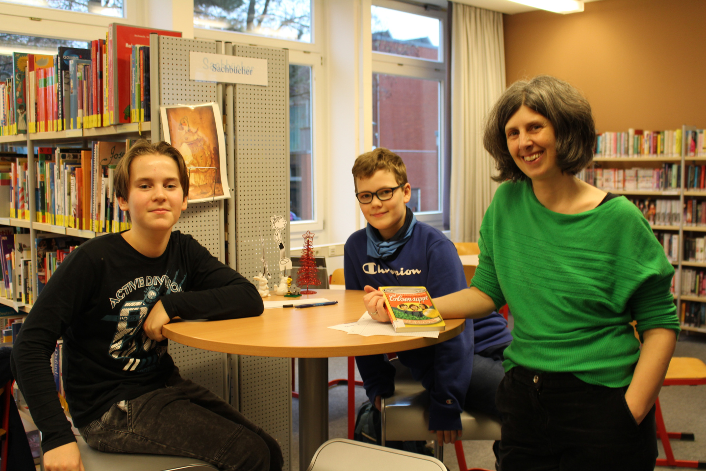 Donnerstag, den 23. November 2023: Während es draußen schüttete, freuten sich die Fans der “Forschungsgruppe Erbsensuppe”-Autorin sehr, Rieke Patwardhan persönlich zum kurzen Plausch in der Bibliothek kennen lernen zu dürfen.