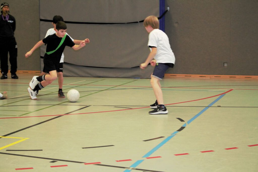 Freitag, den 01. Dezember 2023: Dieser Tag ließ das große Hamburger Stadtderby zwischen dem Hamburger SV und dem FC St. Pauli fast ein wenig zur Nebensache werden. Fünf Teams der 5.Klassen und die Teams der 4.Klassen Grundschule Langbargheide und Luruper Hauptstraße in der Sporthalle des Goethe-Gymnasiums trafen am Freitagvormittag aufeinander. Trotz des Wintereinbruchs der vergangenen Tage war die Zuschauerzahl bei diesem mittlerweile zur Tradition gewordenen Fußballturnier hoch. Auch in diesem Jahr war das Sportprofil S3 maßgeblich für die Ausrichtung verantwortlich und hatte die Schüler und Lehrer eingeladen. Die Profilschüler waren als Ansager, Einweiser, Schiedsrichter, Protokollführer:innen, Ansprechpartner und Support im Einsatz. Neben den spannenden Spielen gab es reichlich selbstgebackenen Kuchen, Süßes, Brezeln und Fruchtsäfte.
