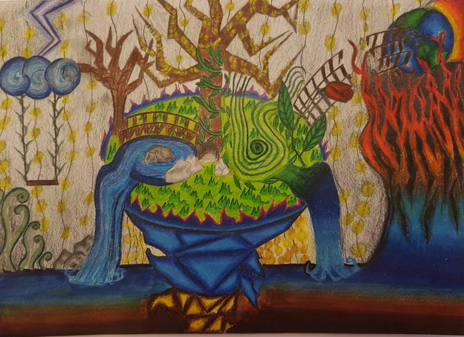Unter diesem Motto stellt der Ganztagskurs ,,Die bunte Welt der Kunst” im Eingangsbereich des Fachtrakts der Kunst seine entstandenen Bilder aus.