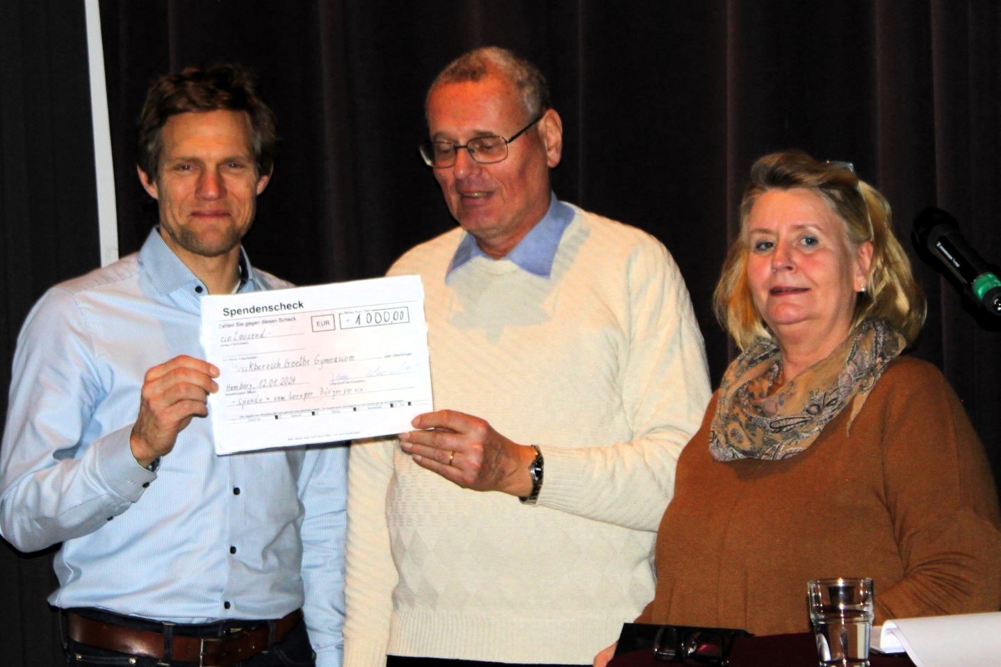 Freitag, den 12. Januar 2024: Völlig überraschend und überwältigend wurde unserem Schulleiter Herrn Scherler im Rahmen des Neujahrsempfanges des Luruper Bürgervereins ein Scheck über 1.000€ für den Musikbereich überreicht. Mit dem Geld sollen Schüler:innen bezuschusst werden, die sich ohne diese Unterstützung keinen privaten und individuellen Instrumentalunterricht leisten könnten.