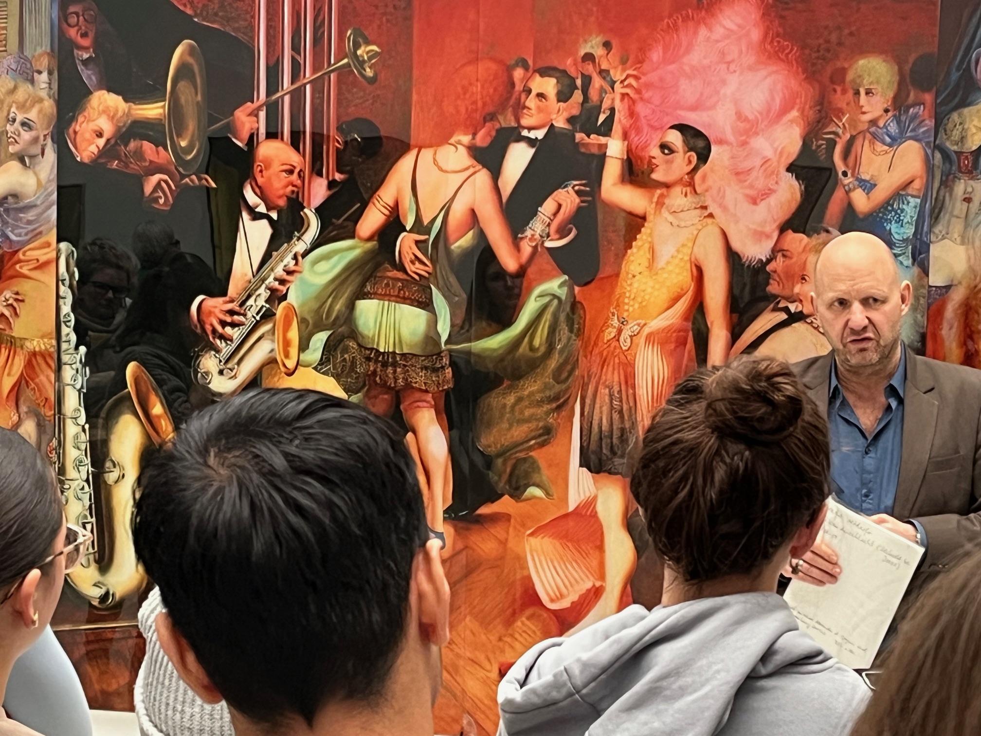 Dix’ Gemälde offenbarten die Hölle des Krieges, die Hoffnung des Himmels und die symbolische Präsenz Jesus. Durch seine Bilder führte uns unser Guide in die goldenen Zeiten ein, die jedoch nur für wenige golden waren. Es wurde deutlich, dass „das Gute“ nicht nur in Bildern oft eine Illusion ist.