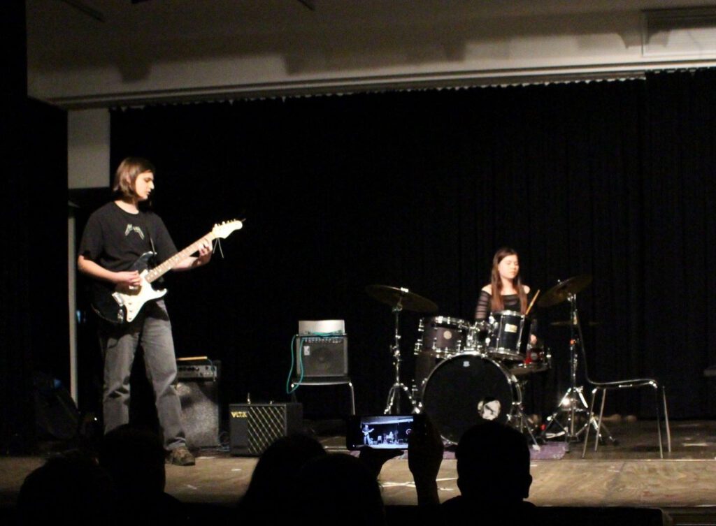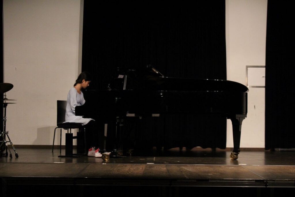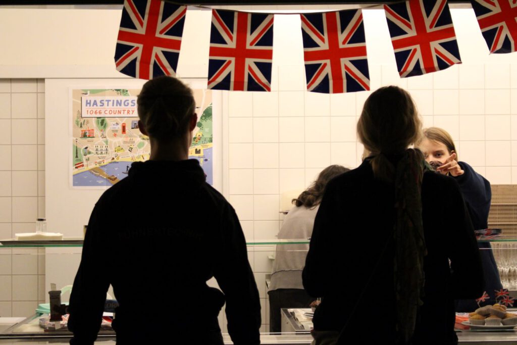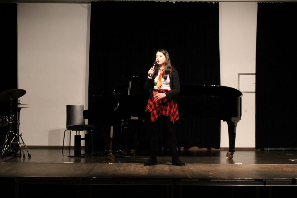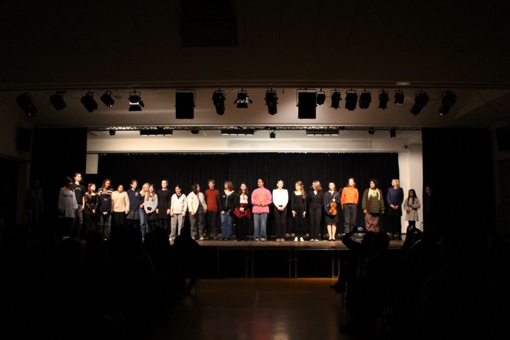 Kulinarisches mit britischem FlairKunst vom S2-Profil im VorraumDaniel mit Abbas Dancing QueenYagmur mit Tetzels PräludiumDiana und Andrej mit Smells Like Teen SpiritKristel mit Good Enough von AtsuoverAnna und Elisabet mit Beethovens MondscheinsonateJasmina und Lian als charismatische ModerationJulia mit No Time To Die von Billie EilishKübra mit Sev Kardesim von SenayLoa, Malin, Selma, Julia, Clara und Asuka aus der 8b mit einer EigenkompositionAlma und Elisabet mit einem Hit aus dem Film GreaseJoana mit Killing Me Softly von The FugeesMeghna, Ethan, Pola und Melda mit einem weltbekannten Song von The ClashHelene mit Duett von YirumaBeifall für alle Musizierenden am Ende des erfolgreichen Kunst- und Musikabends