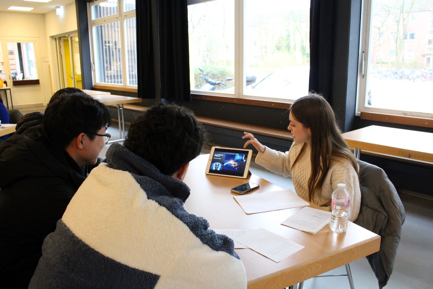 Dienstag, den 05. März 2024: Moral, Wahrheit, Liebe – was ist das? Können Maschinen moralisch sein? Wie verändert sich das „Ich“ durch Framing, parasoziale Beziehungen und die Suche nach dem Sinn des Lebens? Schulde ich meinen Eltern etwas; und würde ich töten und Menschenfleisch essen, um zu überleben? Auf diese und weitere Gedankenexperimente ließen sich die Schüler:innen der Klasse 10a und 10b an diesem Morgen ein. Zehn thematisch unterschiedliche Stationen bot der philosophische Rundgang, den das Kunst-Musik-Profil des S4-Jahrgangs in einer Projektarbeit binnen fünf Wochen erarbeitet hatte und heute in der Pausenhalle für die aufgeschlossenen 10. Klassen vorbereitet hatte. Durch ihre persönliche Note sowie den Einbau von abwechslungsreichen interaktiven Elementen schafften die Referent:innen es, die Besucher:innen zum Nachdenken über philosophische Fragen anzuregen.