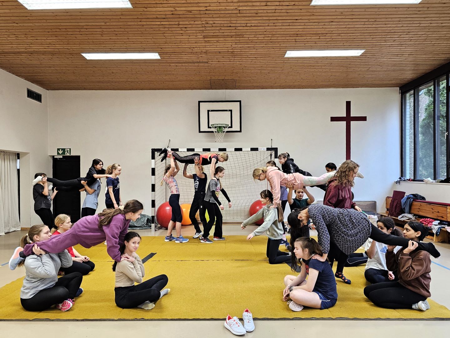 Der Zirkuskurs und der Unterstufenchor reisten in der Zeit vom 26. bis 28. Februar 2024 nach Mölln, um für das anstehende Musical zu proben. Mit Bus und Bahn ging es ca. 2 Stunden in zugeteilten Gruppen zur Jugendherberge Tannenhof. Als wir ankamen, wurden wir in die Zimmer aufgeteilt. Dann haben wir unsere Zimmer eingerichtet und sind um 12:30 Uhr Mittagessen gegangen. Danach sind wir in die Sporthalle gegangen, um zu proben. Wir hatten einen Plan, wann welche Gruppe probt. Somit hatte jeder auch Freizeit, um zum Beispiel auf den neuen Waldspielplatz von der Jugendherberge zu gehen. Um 18:30 Uhr gab es Abendessen. Nach dem Essen hatte der Kiosk von der Jugendherberge geöffnet, was für einige ein kleines Highlight war. Am Abend haben sich Herr Junge und zwei Oberstufenschüler: innen ein Abendprogramm für uns überlegt. Wir sollten ein Theaterstück, ein Gedicht, eine Geschichte oder ein Lied schreiben. Fünf Wörter wurden vorgegeben, die eingebaut werden sollten: Zauberstab, altmodisch, elektrisch, Linienbus, rechnen. Am nächsten Tag haben wir unser Theaterstück bzw. unser Vorbereitetes vorgeführt. Danach haben alle ihre Koffer gepackt und sind schlafen gegangen. Am nächsten Morgen haben wir gefrühstückt. Um 10 Uhr sind wir zur Bushaltestelle gegangen, jedoch war der Bus, der für alle vorgesehen war, zu klein, deshalb musste ein Teil der Gruppe auf den nächsten Bus warten. Dabei haben wir uns die Zeit mit einem Spiel vertrieben. Nachdem der Bus endlich gekommen war, sind wir im Anschluss mit der Bahn weitergereist. Am Ende können wir sagen: Die Proben liefen deutlich besser als die Rückfahrt und wir hatten während der Reise viel Spaß. Das Musical des Zirkuskurses und des Unterstufenchores wird am Montag, den 06. Mai 2024 im Forum aufgeführt. Wir freuen uns über viele Besucher:innen aus der Schulgemeinschaft!