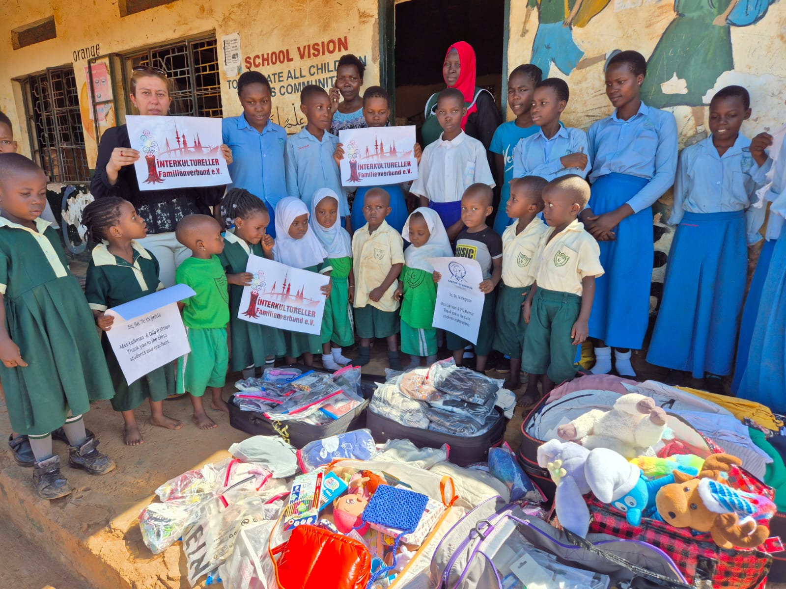 Am 20. März 2024 ist die Organisation Der interkulturelle Familienverbund nach Uganda gereist und hat die Sachspenden, die wir von der 7c , der 5e und der 5d erhalten haben den Menschen und Kindern gespendet, darunter waren Spielsachen, Hefte, Malbücher, Klamotten etc. Die Menschen haben sich sehr gefreut.
