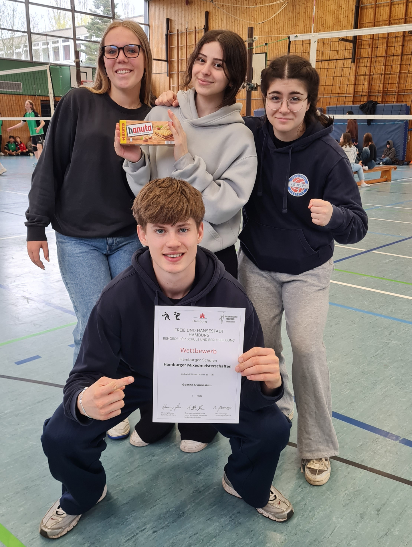Das Oberstufen Volleyball-Mixed-Team hat sich in die Endrunde der Hamburger Meisterschaften gespielt und dort den insgesamt 5. Platz aller Hamburger Schulen erreicht.