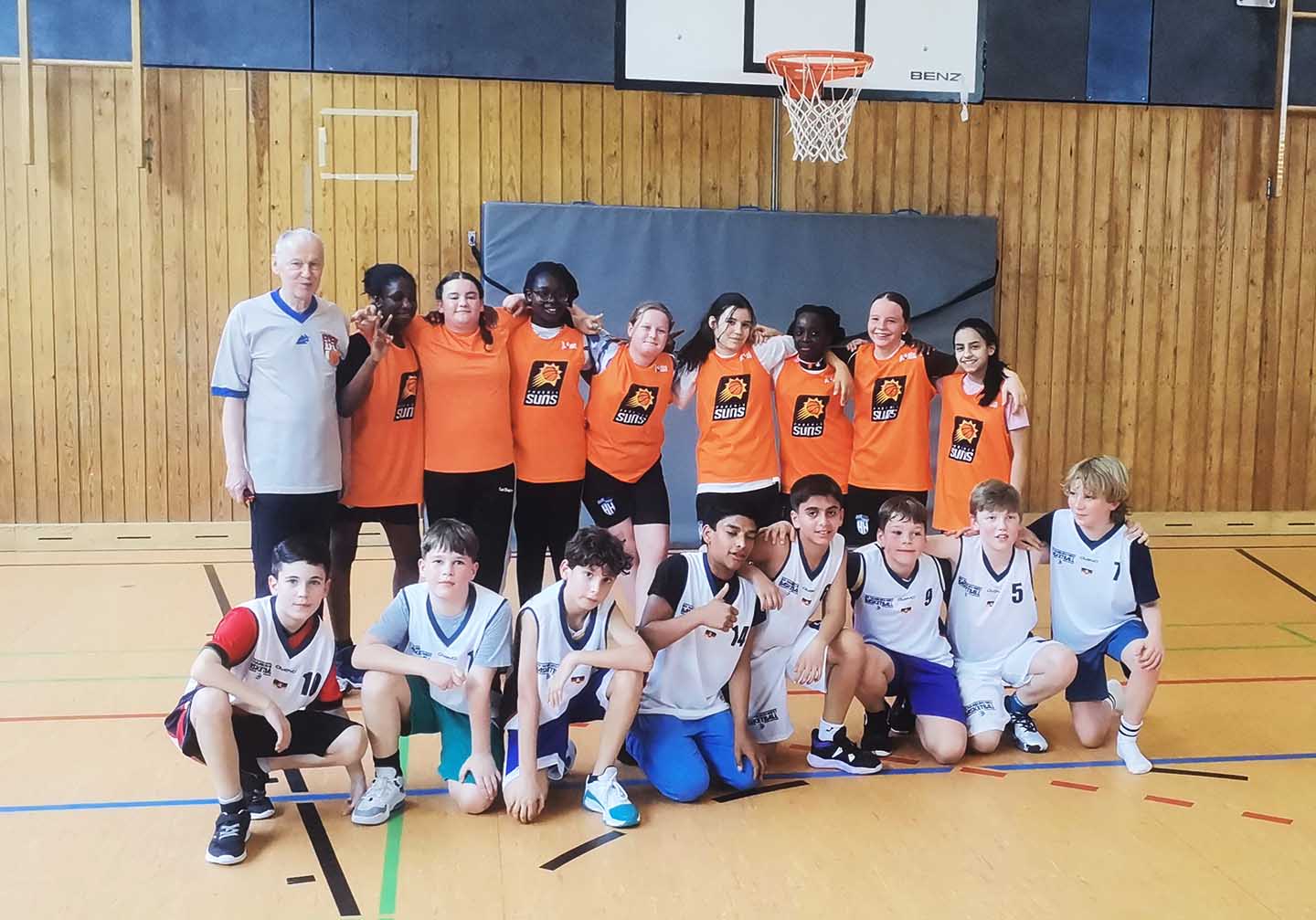 Im Rahmen des Ganztagsunterrichts trainieren 17 Mädchen der 5./6. Klassen des Goethe-Gymnasiums zwei Unterrichtsstunden wöchentlich das Basketballspielen.