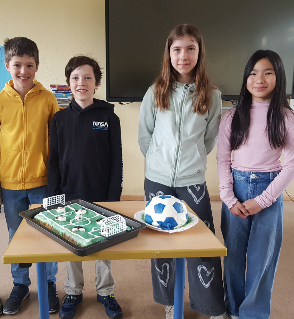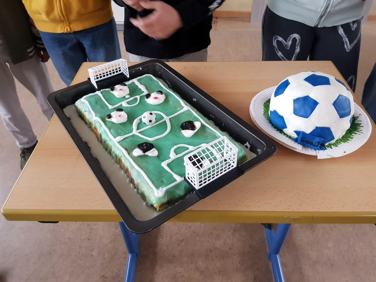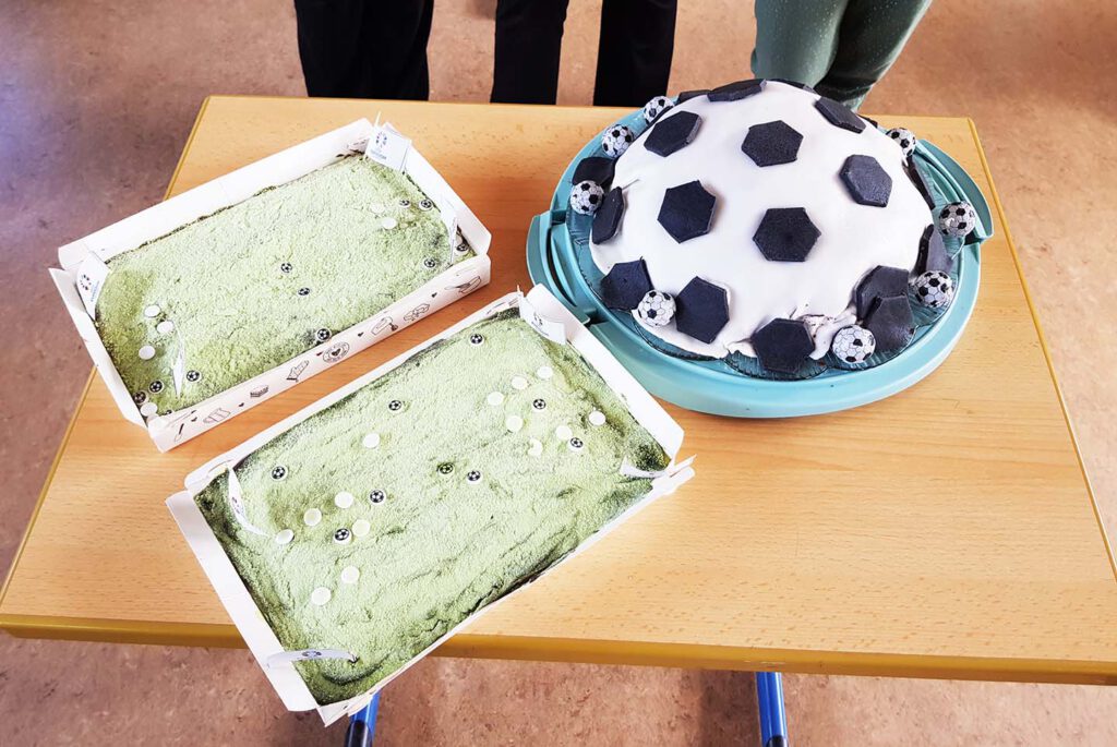 How much do I need? A few eggs, a lot of sugar, some flour… Would you like to know the recipe? Please ask our Monday’s bakermen and bakerwomen! Have a look, here are their cakes – a perfect football and a football pitch.