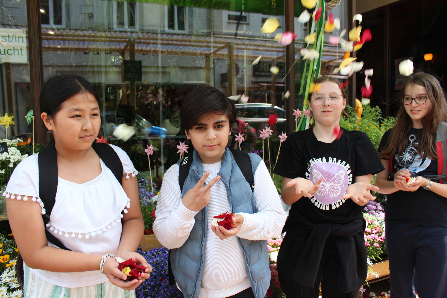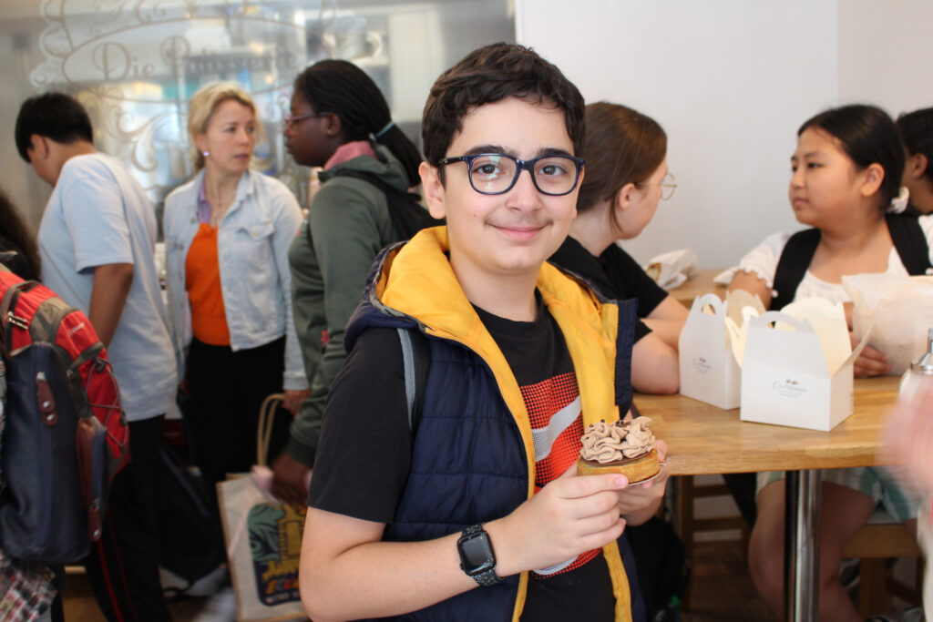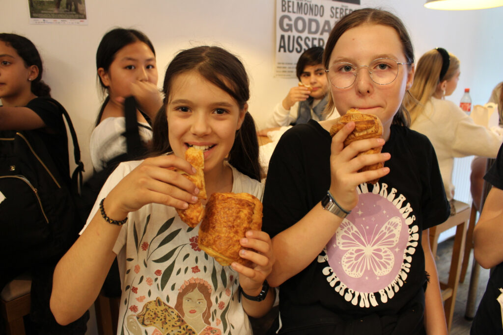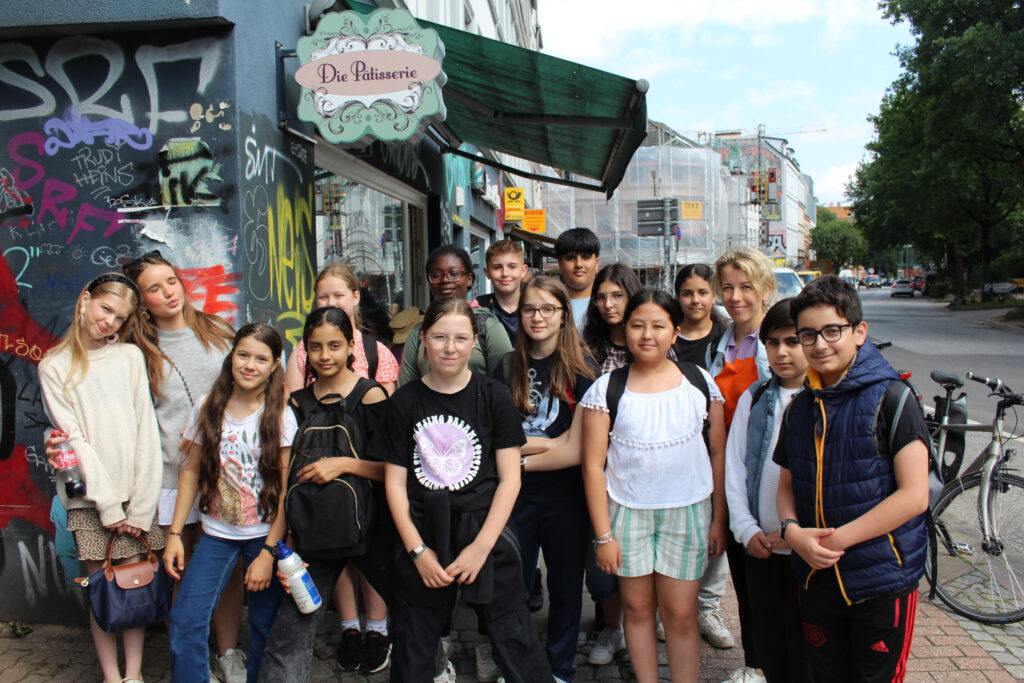 Freitag, den 28. Juni 2024: Wenn die engelhafte Französischklasse von Frau Koch in die Patisserie nach Ottensen reist, dann regnet es definitiv die farbenkräftigsten Blumen! Ganz davon abgesehen gibt es aber auch Croissants, Baguettes und feinsten Törtchen des Landes vor Ort- sei es mit Schoko oder frischen Erdbeeren. Das kulinarische Glück können wir aber nur erreichen, wenn wir unsere Bestellung ganz eigenständig auf Französisch tätigen: “Mais bien sûr! Pas de problème.”