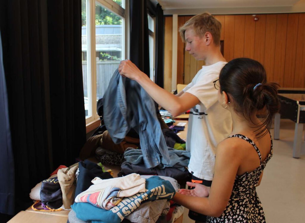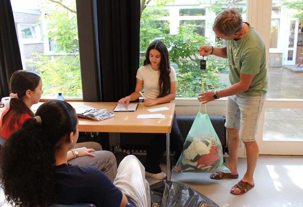 Dienstag, den 02. Juli 2024: Schüler:innen unserer 7. Klassen haben am Texil Race teilgenommen, bei dem es um das Sammeln, die Wiederverwendung und das Recyclen von Textilien geht. Ca. 30 Säcke sind von unseren Schüler:innen und deren Eltern abgegeben worden und wir haben die schönsten Kleidungsstücke herausgesucht, um sie auf einer Textilbörse an unserer Schule für einen guten Zweck für kleines Geld zu verkaufen. Der Rest der Textilien wird nächste Woche von der Firma https://www.fws.de/ abgeholt und dann weitersortiert und weitergegeben/weiterverarbeitet.