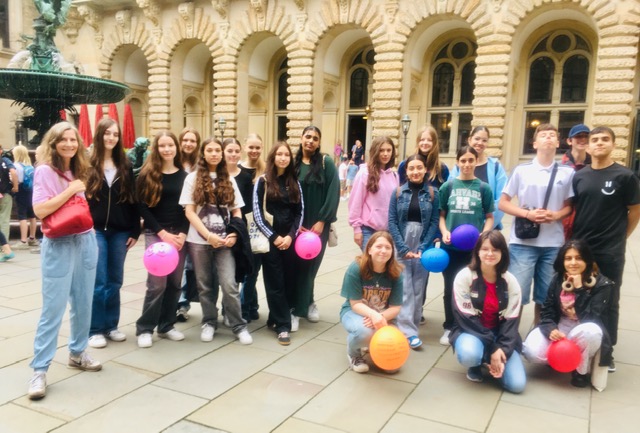 Der erste Tag war dem Thema „Klima und Nachhaltigkeit“ gewidmet. Die Organisation „Open School“ hat uns auf einen Stadtrundgang zwischen Jungfernstieg und Rathaus mitgenommen. Wir haben hier unseren Konsum mit und von digitalen Geräten hinterfragt und viel erfahren über Rohstoffe, die gebraucht werden, um Handys, Smartphones und Tablets herzustellen. Viele unglaubliche „Facts“ zur Herstellung, aber auch zur Datenspeicherung, wenn wir Apps benutzen, haben uns wirklich staunen lassen und manchmal auch nachdenklich gemacht.