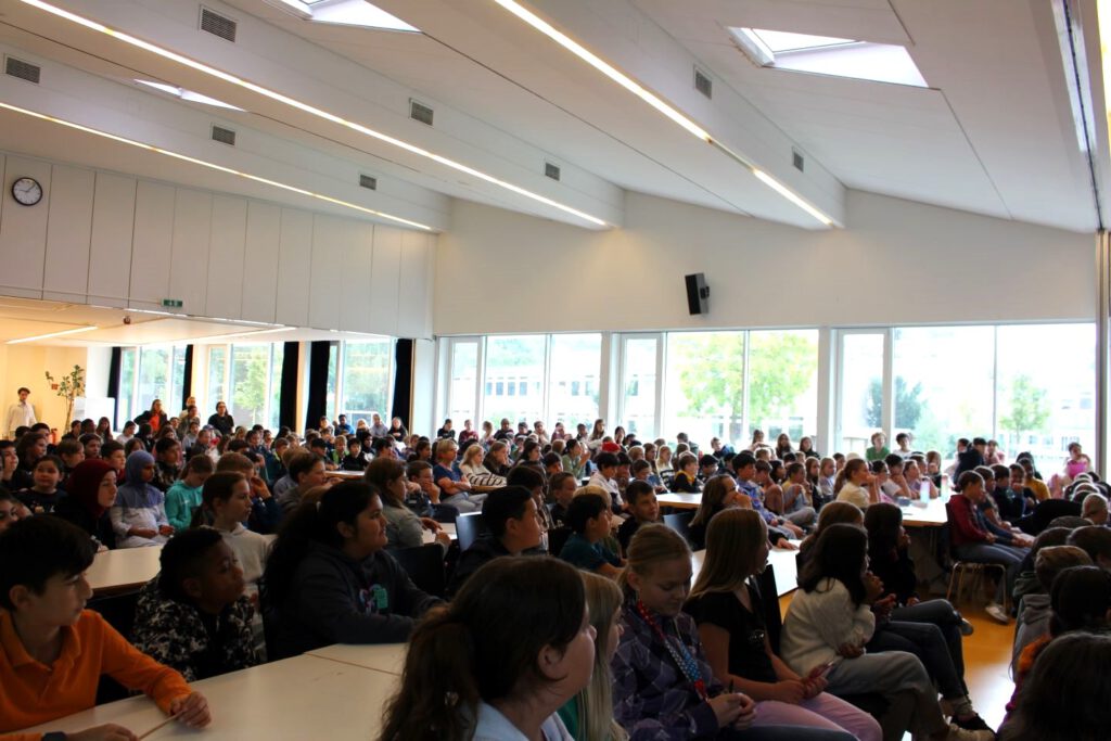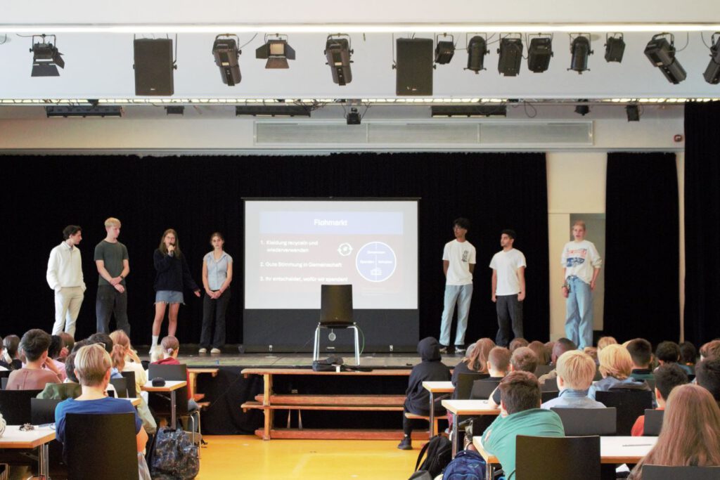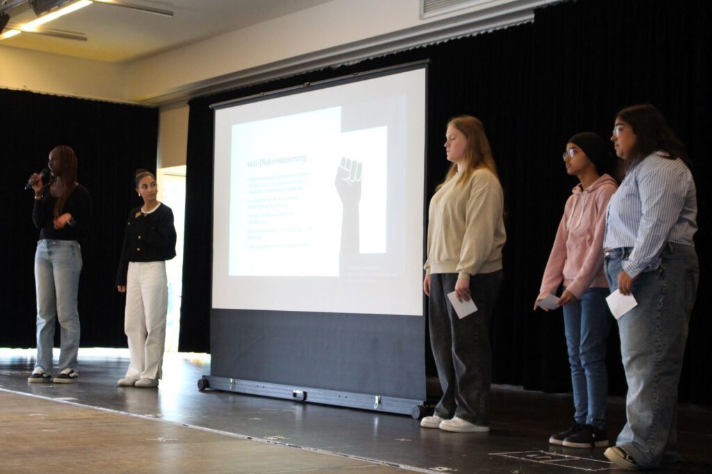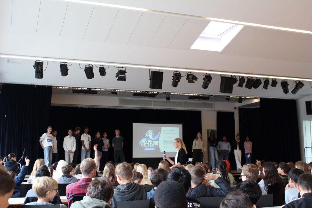 Mittwoch, den 18. September 2024: Ab der zweiten Stunde strömten die Massen jahrgangsweise ins Forum, um sich die Themen der diesjährigen SV-Teams präsentieren zu lassen. Beide Schulsprecherteams haben sich in diesem Schuljahr komplett neu aufgestellt und sind richtig motiviert, das wichtige Amt auszuüben. Das SV-Team Gamma möchte sich u.a. für mehr Räume in den Pausen, eine schülerfreundliche Gestaltung der Toiletten, mehr Sportwettbewerbe mit anderen Schulen und die Durchführung eines Schulflohmarktes einsetzen, während New Era sich für die Themen Antidiskriminierung, kulturelle Vielfalt, Förderung der naturwissenschaftlicher Begabungen (Science Day) und qualitative Hygieneartikel in Mädchentoiletten stark macht. Nachdem sich beide Teams vorgestellt hatten, gab es eine kleine Fragerunde. Im Anschluss daran konnten alle Schüler:innen zur Wahl schreiten. Schüler:innen des 10. Jahrgangs sorgten für einen geordneten Ablauf und z.B. betreuten die Wahlkabinen und die Wahlurne. Vielen Dank für euren Einsatz! Danke auch an das Technikteam und natürlich die Verbindungslehrerinnen Frau Günther und Frau Hägele für die ganze ORGA!