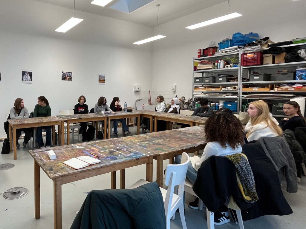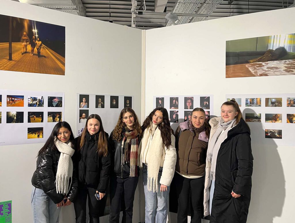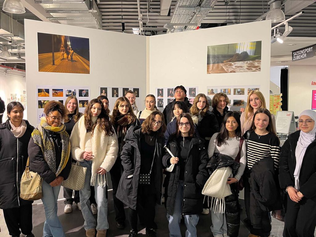 Im Kunst-Profil S1 von Frau Springer war diese Woche einiges los: Der Montag begann mit einem Workshop in den Deichtorhallen, in dem es um Verschwörungserzählungen und deren Darstellung in Bildern ging. Am Donnerstag Abend ging es dann ab in den Jupiter zur Vernissage (Eröffnung) der Ausstellung „Zeigen, was ist“, in der fotojournalistische Arbeiten ausgestellt sind. Doch nicht nur das: Auch vier großartige Fotografie-Arbeiten aus unserem Profil, die wir im Rahmen des Wettbewerbs „Jugend fotografiert Deutschland“ eingereicht haben, wurden von der professionellen Jury ausgewählt, in der Ausstellung großformatig präsentiert und vom Fachpublikum betrachtet und gelobt! Weil es uns im Jupiter so gut gefallen hat, kamen wir auf Einladung des Fotojournalisten Erol Gurian am Freitag direkt wieder und nahmen an einem intensiven, vierstündigen Workshop teil. Hier lernten und erprobten wir gestalterische Grundlagen der Fotografie, sprachen über guten Fotojournalismus, lernten KI-generierte Bilder von Fotografien zu unterscheiden und machten am Ende selbst Fotos unter professionellen Bedingungen. Schön war’s, die Woche voll Kunst! Und wer Lust und Zeit hat: Schaut doch mal im Jupiter vorbei und guckt euch die Fotostories unseres Kunstprofils an!