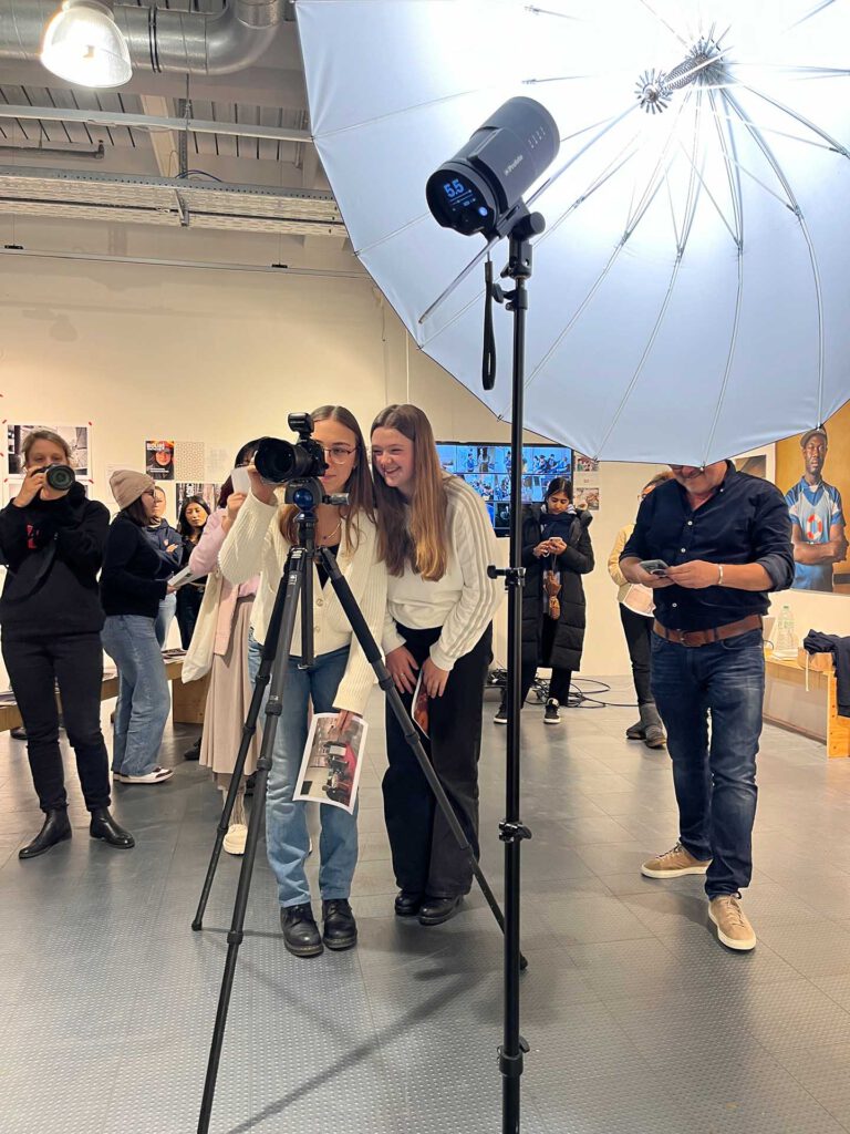 Weil es uns im Jupiter so gut gefallen hat, kamen wir auf Einladung des Fotojournalisten Erol Gurian am Freitag direkt wieder und nahmen an einem intensiven, vierstündigen Workshop teil. Hier lernten und erprobten wir gestalterische Grundlagen der Fotografie, sprachen über guten Fotojournalismus, lernten KI-generierte Bilder von Fotografien zu unterscheiden und machten am Ende selbst Fotos unter professionellen Bedingungen.