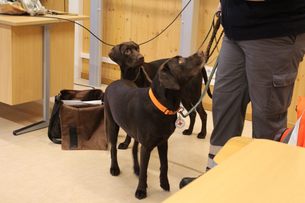 Mittwoch, den 04. Dezember 2024: Im Diff.-Kurs “Rund um den Hund” waren Gesa Fidrich und Silke Ahlquist am Goethe-Gymnasium. Sie arbeiten ehrenamtlich mit ihren Hunden beim DRK, um Menschen, die plötzlich verschwunden sind oder z.B. bei einem Erdbeben in den Trümmern verschüttet worden sind, zu retten. Diese Hunde nennt man trailer oder Flächenhunde. Eine Ausbildung von diesen Hunden dauert 2-3 Jahre. Hunde können 1000mal besser riechen als wir Menschen, deswegen muss man das dann auch gezielt trainieren. Wenn die Hunde bei 25°C suchen und es auch noch schwül ist, können die Hunde 10-30 min suchen. Aber im Winter bei ca 0°C schaffen sie es 1h-1h30 min lang, danach brauchen sie eine Verschnaufpause. Da die meisten Einsätze bei Mitternacht passieren, erschwert die Dunkelheit nochmal das Suchen. Letztlich haben die beiden Ehrenamtlichen sich diese Arbeit ausgesucht, weil ihre Hunde einerseits gerne Dinge aufspüren und sie andererseits so mehr Zeit mit ihren Hunden verbringen können. Nach dem Vortrag gab es noch eine kleine Vorstellung auf dem Schulgelände. Nachdem die Hunde eine Geruchsprobe einiger Kinder aus dem Kurs gemacht haben, haben sie all diese wieder erfolgreich gefunden.
