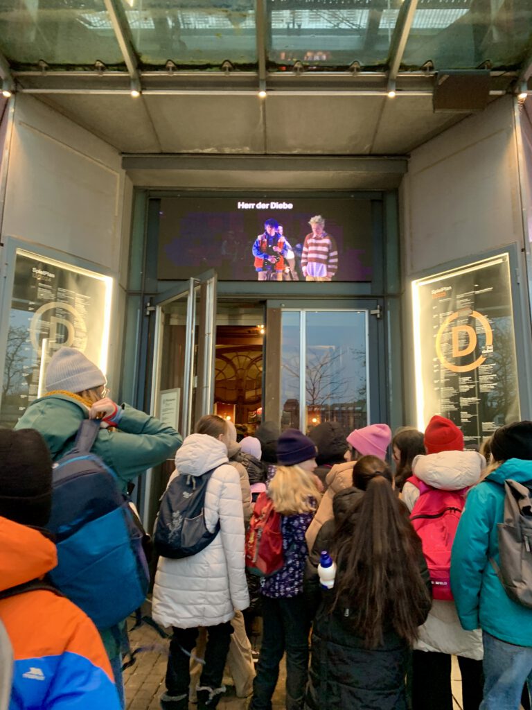 … ging es nicht nur für die Brüder Prosper und Bo, sondern auch für die 5a und 5e am Freitag dem 13. (!) Dezember 2024. Ein spektakuläres Bühnenbild und eine rasante Verfolgungsjagd brachte den beiden fünften Klassen eine Menge Spaß und Staunen ein: „Herr der Diebe“ im Schauspielhaus überzeugte mit viel Witz und tollen Effekten – etwa einer Bühne voll mit Wasser und einem fliegenden Karussell. Danach ging es auf den Weihnachtsmarkt, wo die Kinder sich mit Crêpes, Pommes und Schmalzgebäck stärken konnten oder einfach durch den Winterwald flanierten. Eine schöne Einstimmung in die letzten Tage vor den Ferien…