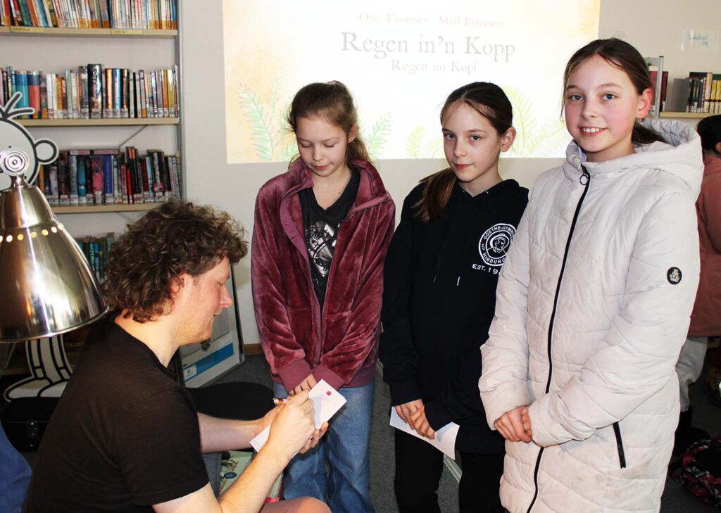 Donnerstag, den 6. Februar 2025: Wir alle kennen das Gefühl, dass manchmal alles zuviel werden kann. Zuviele Hausaufgaben, zuviele Prüfungen und Tests und der Stress will einfach nicht aufhören. So ergeht es der Hauptfigur Gunnelt, seines Zeichens Hausmeister und Ameisenbär, in Ove Thomsens Kinderbuch “Regen im Kopf”. Damit bei uns nicht die grauen Regenwolken einziehen, gehen wir mit Ove zusammen auf Fantasiereise mit musikalischer Begleitung. Ove ist nämich ein richtiger Musiker, der nicht nur toll Gitarre spielt, sondern auch noch super singen kann.