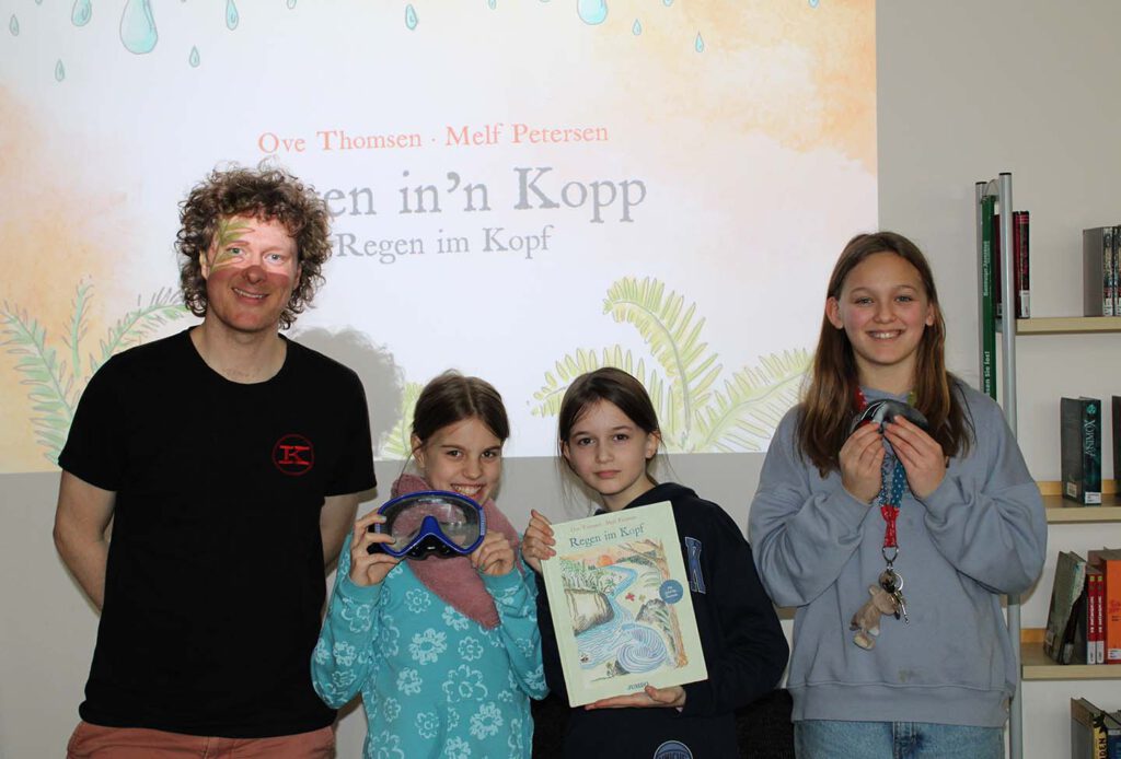 Donnerstag, den 6. Februar 2025: Wir alle kennen das Gefühl, dass manchmal alles zuviel werden kann. Zuviele Hausaufgaben, zuviele Prüfungen und Tests und der Stress will einfach nicht aufhören. So ergeht es der Hauptfigur Gunnelt, seines Zeichens Hausmeister und Ameisenbär, in Ove Thomsens Kinderbuch “Regen im Kopf”. Damit bei uns nicht die grauen Regenwolken einziehen, gehen wir mit Ove zusammen auf Fantasiereise mit musikalischer Begleitung. Ove ist nämich ein richtiger Musiker, der nicht nur toll Gitarre spielt, sondern auch noch super singen kann. Komm bald wieder zu uns!