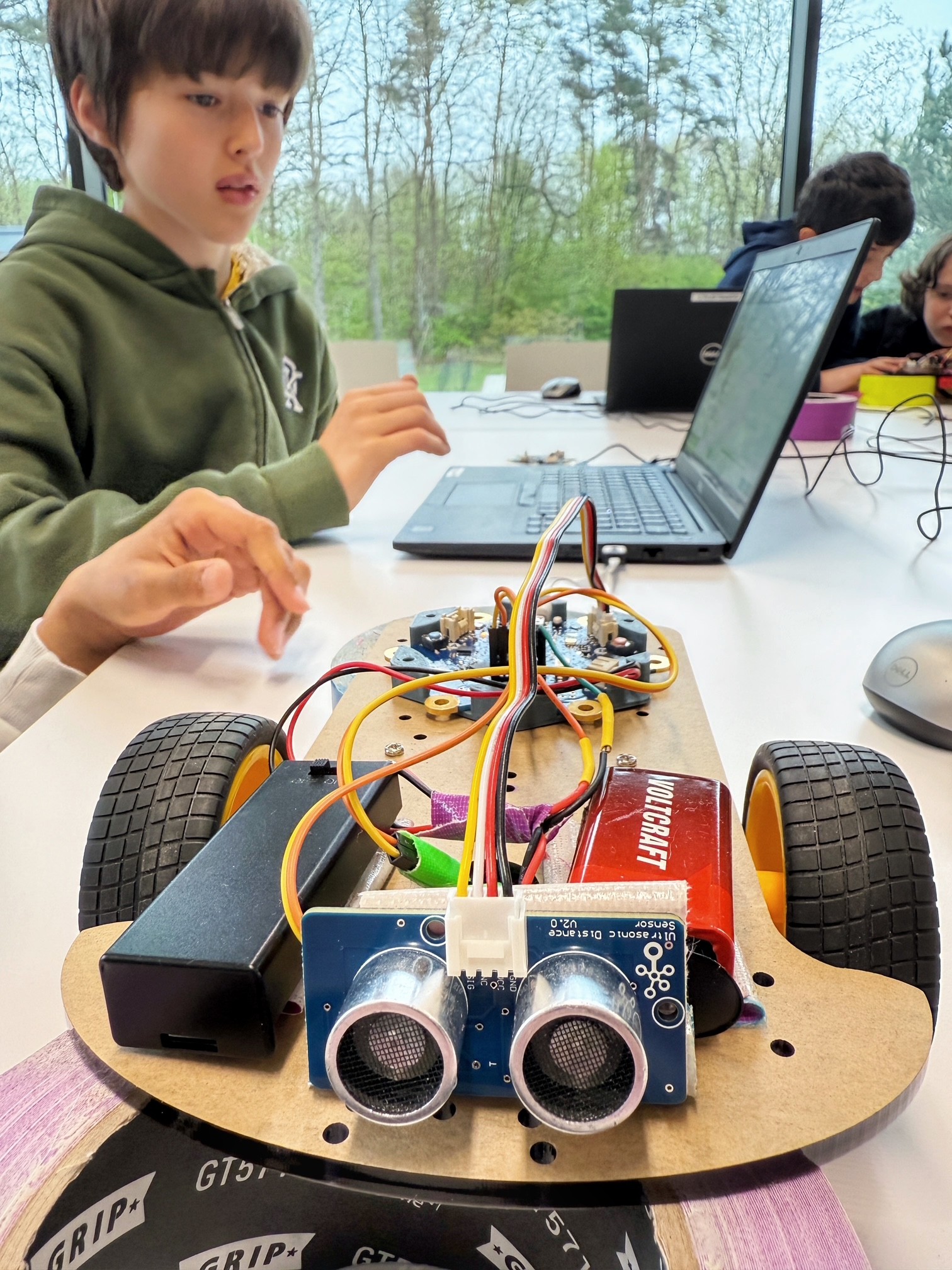 Donnerstag, den 17. April 2025: Wie programmiert man einen Mini-Computer, der einen Roboter steuern kann? Diese spannende Frage beschäftigte die Schüler:innen des Matheexperten-Kurses beim Besuch des Schülerlabors Light&Schools auf dem DESY-Gelände. Am Vormittag machten sich alle mit dem Calliope vertraut – einem kompakten und vielseitigen Mini-Computer. In praktischen Übungen wurden die Grundlagen der Programmierung vermittelt und erste eigene Codezeilen geschrieben. Nach einer gemeinsamen Mittagspause in der DESY-Kantine begann dann der spannende Praxisteil: Der Calliope bekam durch den Einbau von „Augen“ (Ultraschallsensoren) und Rädern seine erste Roboter-Identität. Nun lag der Fokus darauf, die Hinderniserkennung und die Ausweichalgorithmen präzise zu programmieren, damit der Roboter selbstständig auf seine Umgebung reagieren konnte. Mit jedem Code-Schnipsel wuchs der Fahrspaß. Der Tag im Schülerlabor Light&Schools bot den Schüler:innen nicht nur die Möglichkeit, ihre technischen Fertigkeiten zu erweitern, sondern auch, Teamgeist und Kreativität in einem praxisnahen Umfeld zu erleben. Ein rundum gelungener Ausflug, der allen viel Spaß gemacht hat.
