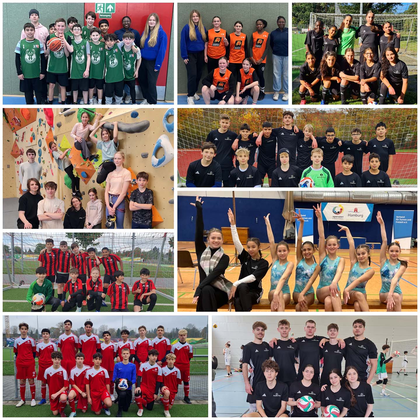 Das sportliche Schuljahr unserer Schulmannschaften ist beendet. Wir waren als Schule wieder erfolgreich. Dieses Jahr nicht im Fußball, wie sonst so oft in den letzten Jahren, dafür in anderen Sportarten. So sind wir im Basketball bei den Mädchen und bei den Jungen in der Wettkampfklasse 4 (WK4) Hamburger Vize-Meister geworden! Im Turnen wurden unsere Mädchen (WK4) ebenfalls Hamburger Vize-Meisterinnen! Im Volleyball hat unsere Oberstufen-Mixed-Mannschaft die Bronze-Medaille bei den Hamburger Meisterschaften geholt! Im Klettern (WK3) haben sich Jasmina Baccar und Paula Kerpen gegen 28 andere Schulen durchsetzen können und holten sich Silber und Bronze.