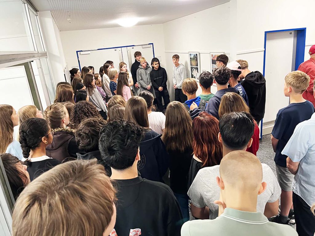 Donnerstag, den 3. Juli 2025: Ausgehend vom Projektthema “Ich rette die Welt” zeigen die Schüler:innen des Kunstkurses Jahrgang 10 von Matthias Sternberg ihre Visionen von Lösungen für eine bessere Welt. Die selbst gewählten Themen reichen von Gewalt gegen Frauen, Waffengewalt, Krieg und Armut bis zu gefährdeter Bildung. Bei der Konzeptentwicklung und Umsetzung wurden die Schüler:innen von Tom Schönfeld (Künstliche Intelligenz, Akademie für Fotografie) und Valérie Wagner (Bildgestaltung /Projektbegleitung, Akademie für Fotografie) unterstützt. Das Projekt zur Förderung von Bildlesekompetenz wurde gefördert von der Claussen-Simon-Stiftung.