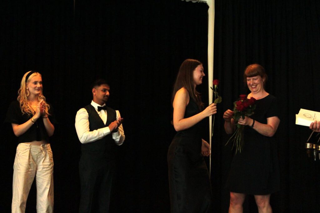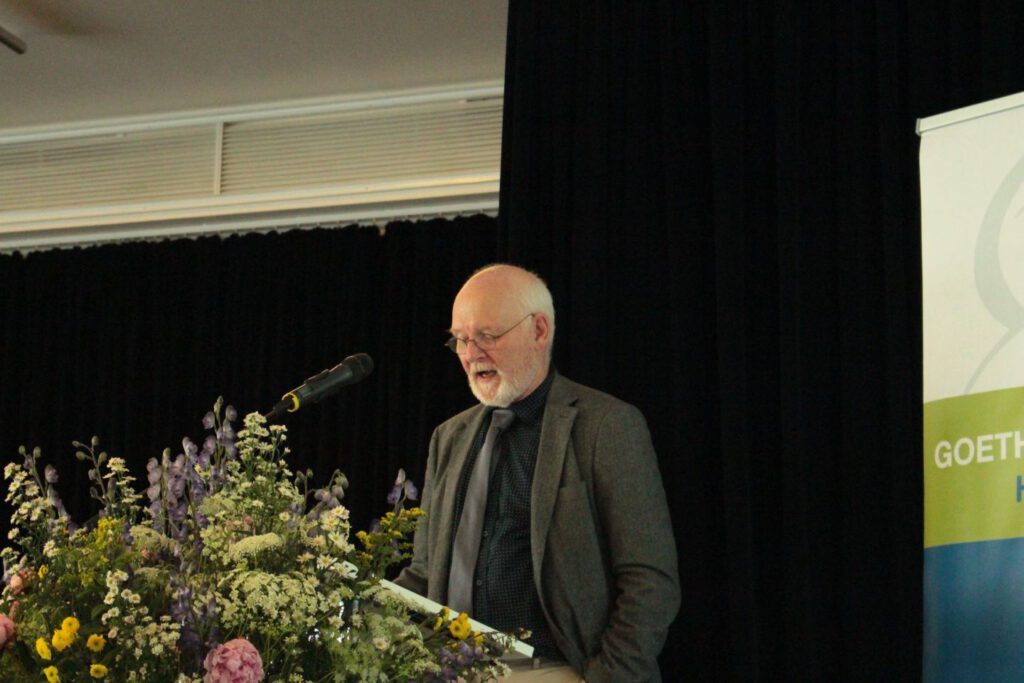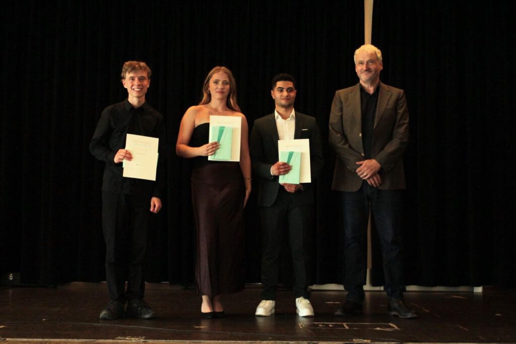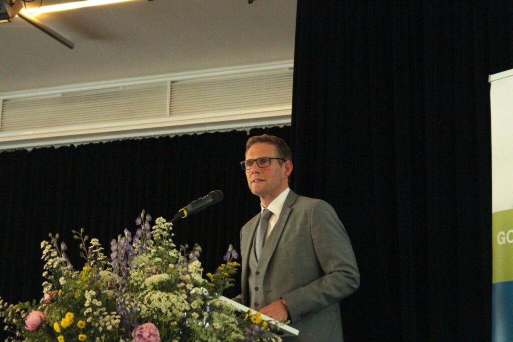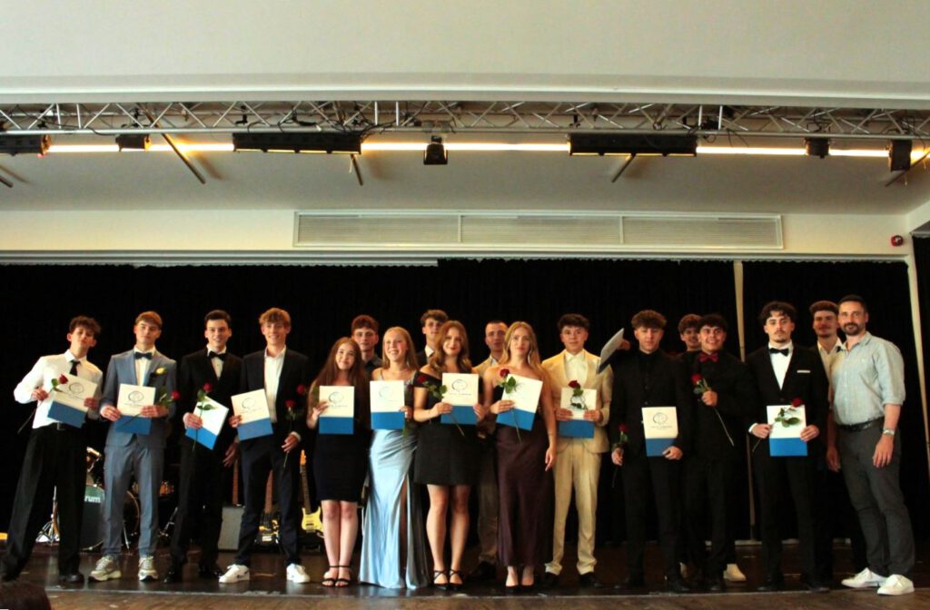 Freitag, den 11. Juli 2025: Im Forum des Goethe-Gymnasiums wurden die diesjährigen Abiturient:innen vor acht Jahren eingeschult – und nun entlassen. Wie Stars von Familie, Freund:innen und Lehrkräften gefeiert, marschierten die Absolvent:innen ein und erhielten sodann bestärkende Abschiedsworte von der Schulleitung. Hr. Scherler ermutigte dazu, wirkmächtige Gestalter:innen und nicht bloße Zuschauer:innen zu sein. Er sprach den jungen Erwachsenen das Potential zu, Veränderungen bewirken zu können, indem sie mit wachen Herzen und offenen Augen, Verantwortung für sich und die Gesellschaft übernehmen. Neben Danksagungen an das gesamte Schulpersonal und an die ehrenamtlichen Eltern des Café Goethe fanden sich in Hr. Lenzs Rede auch Mut machende Worte. Als Autor:innen ihrer eigenen Geschichte haben die heute entlassenen Schüler:innen ihre Zukunft in eigenen Händen. „Zweifel sind Verräter. Sie rauben uns, was wir gewinnen können, wenn wir nur einen Versuch wagen (William Shakespeare).” Dann war der große Moment da: Die Profile wurden nacheinander auf die Bühne gerufen. Auf der Bühne verlas der Oberstufenkoordinator die Namen jeder einzelnen Person, die dann durch den Schulleiter das Abiturzeugnis verliehen bekam. Zuvor richteten die Tutor:innen persönliche Worte an ihre Schützlinge. Dabei zählten sie beispielsweise ihre gemeinsamen Erfolge auf und schwelgten in Erinnerungen. Auch von Seiten der Abiturient:innen erfolgte ein Rückblick auf die Schulzeit mit Dankesworten und weiteren Ermutigungen. Wie strahlende Sieger:innen stellten sich die Schüler:innen nach der Zeugnisübergabe mit ihrer (stellvertretenden) Profilleitung für ein letztes Abschlussfoto auf, bevor am Ende alle Anwesenden mit einem Gläschen Sekt oder einem anderen kühlen Getränk auf den Abiturjahrgang anstießen. Musikalisch untermalt wurde die Entlassungsfeier durch drei Auftritte der Big Band und „Ethan’s Song”, einer rührenden Eigenkomposition aus dem Musikprofil. Geehrt wurden im offiziellen Teil außerdem Schüler:innen, die herausragende Leistungen in Mathe und Physik vollbrachten, sowie die Abiturient:innen, die während ihrer Schulzeit besonderes Engagement oder außergewöhnliche Leistungen gezeigt haben.