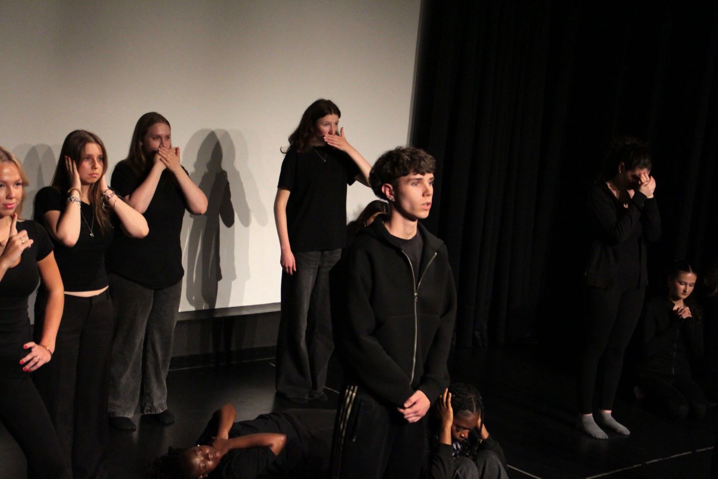 Donnerstag, den 10. Juli 2025: Egal ob aus Scham, aus Stolz, aus Angst – es steckt immer ein Grund hinter dem Schweigen und eine Geschichte in der Stille. Aber hörst du sie? Willst du sie hören? Das PGW-Profil aus S2 präsentierte unter der Leitung von Fr. Münch eine eigens erdachte Szenencollage über die Facetten von Stille. Neben politischen Botschaften, die dazu animieren, sich aktiv für die Demokratie und gegen die Diskriminierung auszusprechen, gab es auch witzige Momente wie etwa bei der Verfolgungsjagd der Kommissarin. Die jungen Schauspieler:innen glänzten in ihren Szenen mit Ausdrucksstärke und Charme. Ein Highlight des Abends: Die im Vorwege erstellten Audiowalks mit Achtsamkeitsübungen, Buchzitaten, Schlagzeilen und Songs rund um das Thema Stille. Eine gelungene Anregung, um einen adäquaten Umgang mit Stille zu finden!