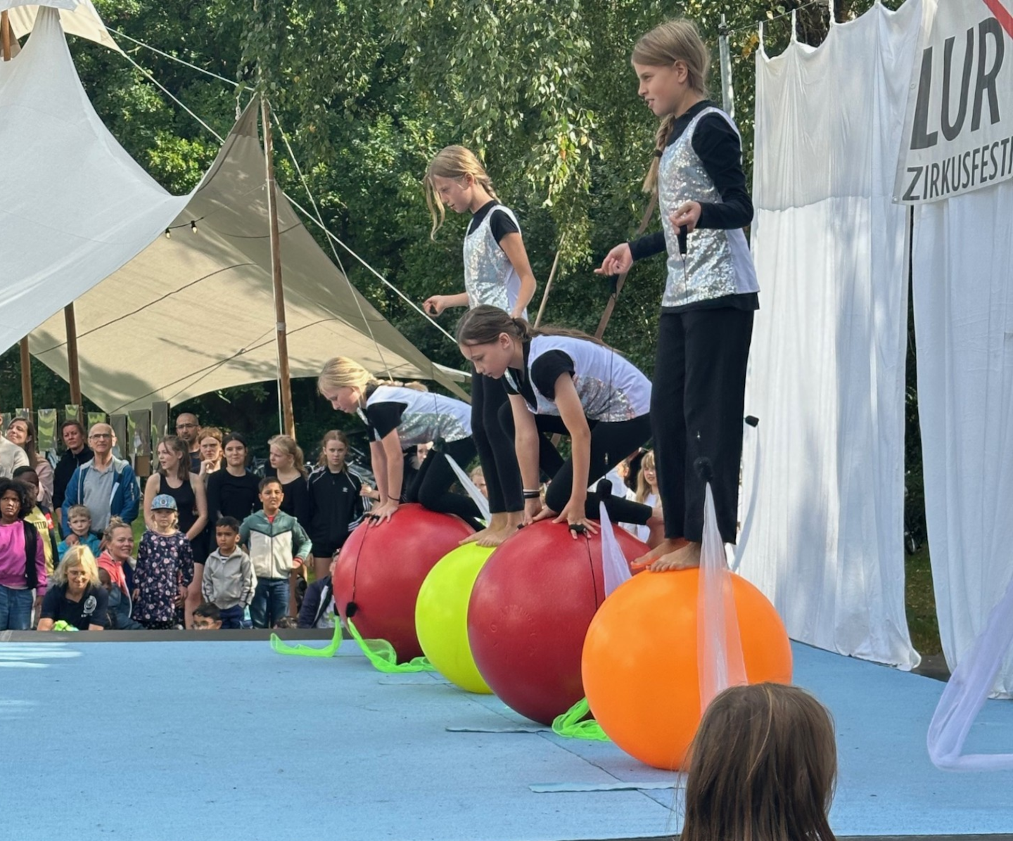 Auch in diesem Schuljahr war der Zirkuskurs unter der Leitung von Frau Haddorp und Jule Wollesen wieder auf der Lurupina vertreten. Nachdem es morgens noch geregnet hatte, strahlte am Mittag die Sonne auf den Böverstpark, als sich die Zirkusgruppen der Grundschule Lohkampstraße, des Goethe-Gymnasiums und der Kinder- und Jugendzirkus Abrax hinter der Bühne trafen. Vor dem zahlreich erschienenen Publikum boten die Kinder und Jugendlichen ihre einstudierten Kunststücke dar. Wie es im Zirkus üblich ist, unterstützten sich die Gruppen gegenseitig mit Material und Musik und auch die Anmoderation wurde gemeinsam gestaltet.