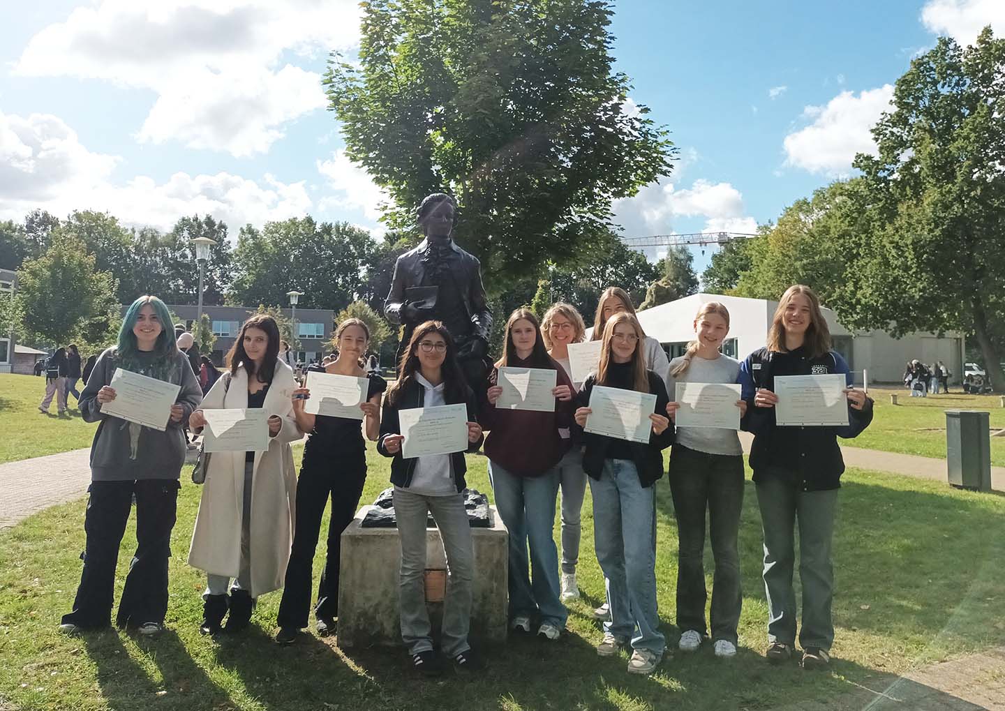 La bonne nouvelle: Die Schülerinnen Alma Lux, Johnana Begas, Jarla Fink, Eva Anthony, Hanna Buroh und Ela Güclü haben in diesem Jahr die DELF Prüfung A2 erfolgreich bestanden. Die DELF-Prüfung ist freiwillig und für besonders gute und leistungsorientierte Schüler:innen. Icchya Sen, Milenka Barl, Isabel Graeve, Jasmina Baccar, Elena Zohrab und Selina Ribeiro Simoes absolvierten in diesem Jahr die DELF Prüfung A1.