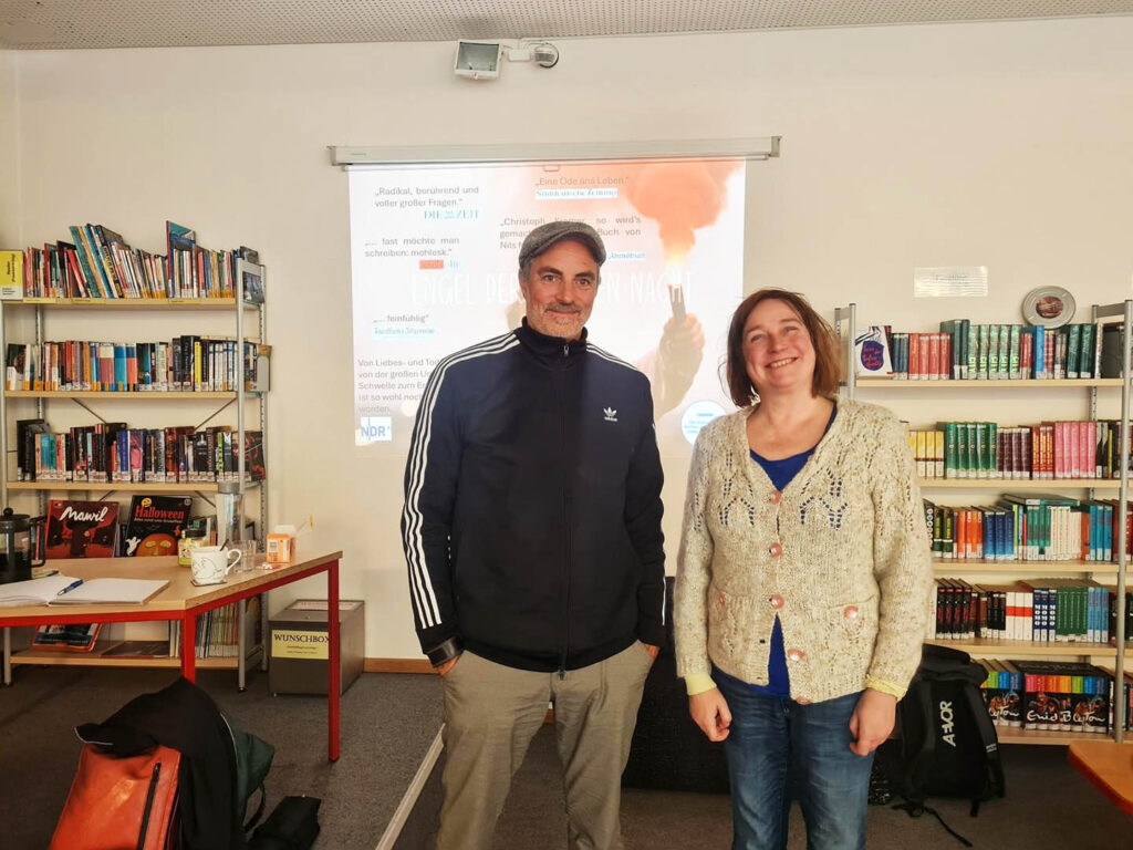 Montag, den 6. Oktober 2025: Denn in Nils Mohls neuem Jugendroman geht es ganz schön turbulent zur Sache- kein Wunder, wenn der Hauptschauplatz der Kiez rund um die Reeperbahn und Hamburgs Hafen ist. Rote und blaue Pillen spielen eine Rolle und immer wird im Buch eine Seite komplett schwarz und die Story fängt von vorne an. Wer die “Engel der letzten Nacht” lesen will, muss sich leider noch bis nach den Herbstferien gedulden oder interviewt Frau Stellys Klasse 10b, die live an dem Morgen dabei war.