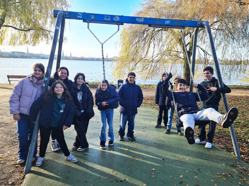 Danke an Frau Schramm, die extra für uns ihren Ausflug zur Kinderbuchmesse nach Oldenburg verschoben hat, um mit uns zur Lesung zu gehen und an der Alster zu toben.