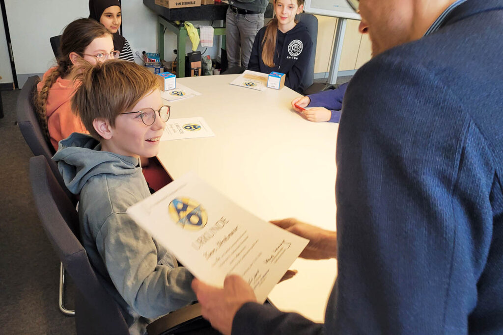 Aber auch Leonard Füchsel und Ronja Nehls (beide 5e) und Tarana Wafa (6e) strahlten, als ihnen ihre Urkunden für einen dritten Platz überreicht wurden.
