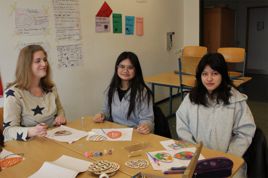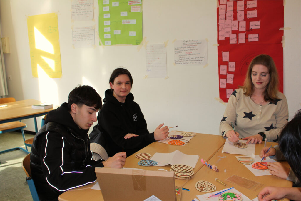 Statt eines anstrengenden, weil intensiven Schullerntages wurde es bei uns kreativ und bunt: Gemeinsam mit unserer Klassenlehrerin, Frau Heidukowski, machten wir uns mit viel Liebe für das Detail an die Gestaltung von Ostereierdekorationen. Mit Pinseln, Farben und vielen guten Ideen entstanden individuelle kleine Kunstwerke – jedes Ei so einzigartig wie wir selbst eben auch. Unterschiedliche Kulturen, Feste und Traditionen werden bei uns live im Klassenraum gelebt.