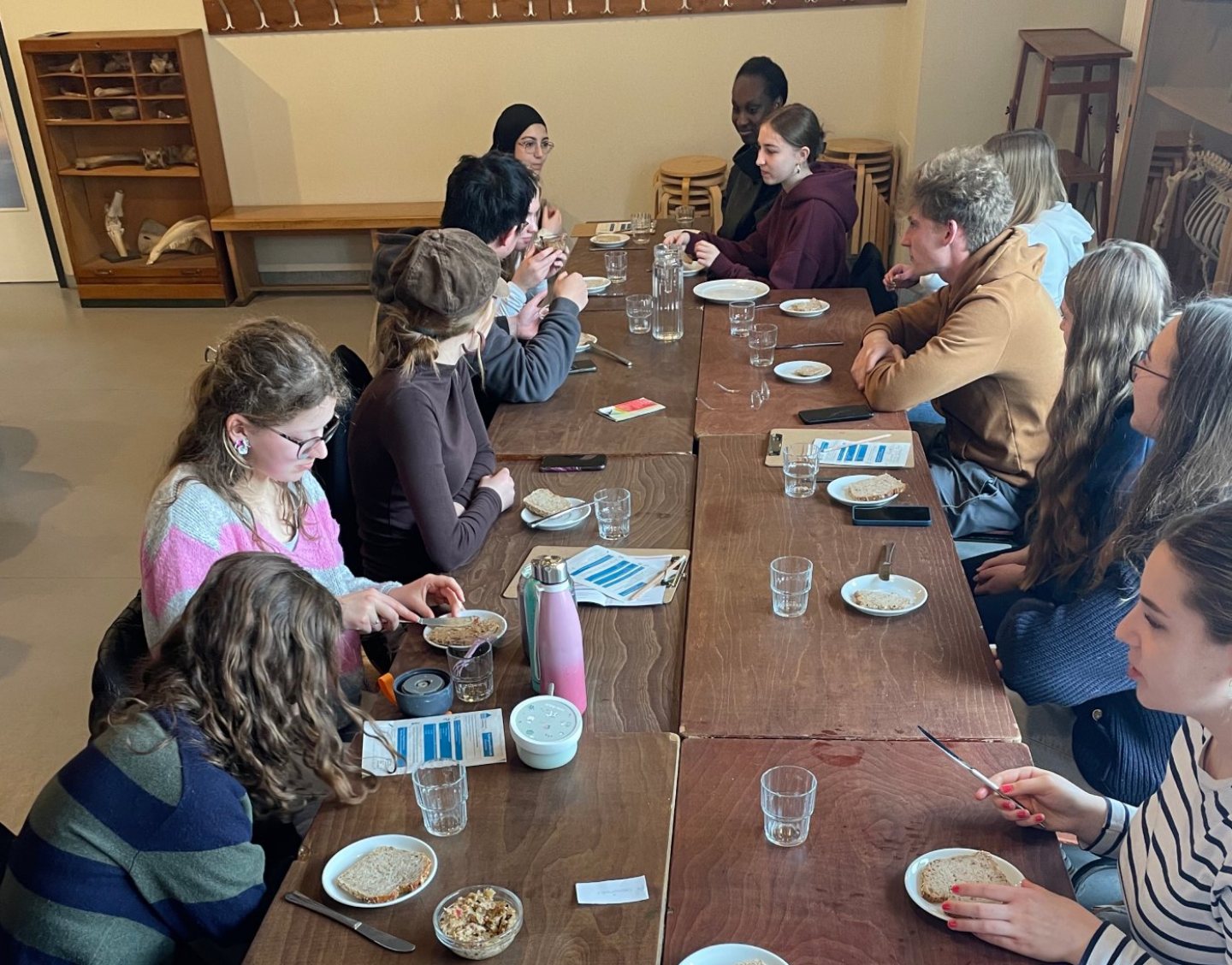 Im Anschluss an eine allgemeinen Einführung, wurden wir in zwei Gruppen aufgeteilt und erkundeten anhand eines Fragebogens zunächst das Gelände, bevor wir in der zweiten Hälfte eine falsche „Leberwurst“ aus einfachen Zutaten herstellten. Nachdem die Gruppen gewechselt hatten wurden die verschiedenen “Leberwürste” bei einem gemeinsamen Essen mit Brot verspeist.