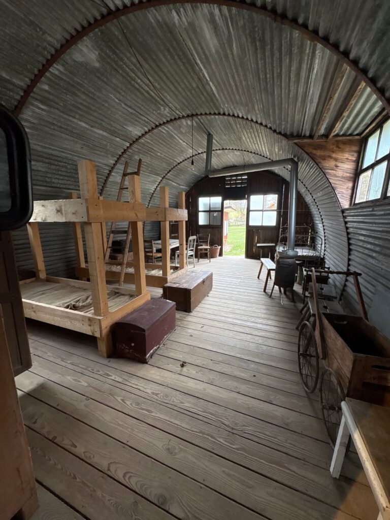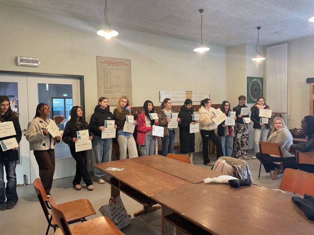 Dienstag, den 31. März 2026: Wir, die 12. Klasse im Kunst-Musik-Profil aus dem Geschichtskurs von Frau Kafka, besuchten das Freilichtmuseum Kiekeberg. Im Rahmen des Programms “zwischen Nissenhütten und falscher Leberwurst” beschäftigten wir uns mit dem Leben nach dem Zweiten Weltkrieg in Hamburg. Besonders eindrücklich waren die Nissenhütten – einfache Hütten aus Holz und Wellblech – und die Ley-Hütte, die den Wohnraummangel und die Lebensbedingungen im zerstörten Hamburg zeigten.