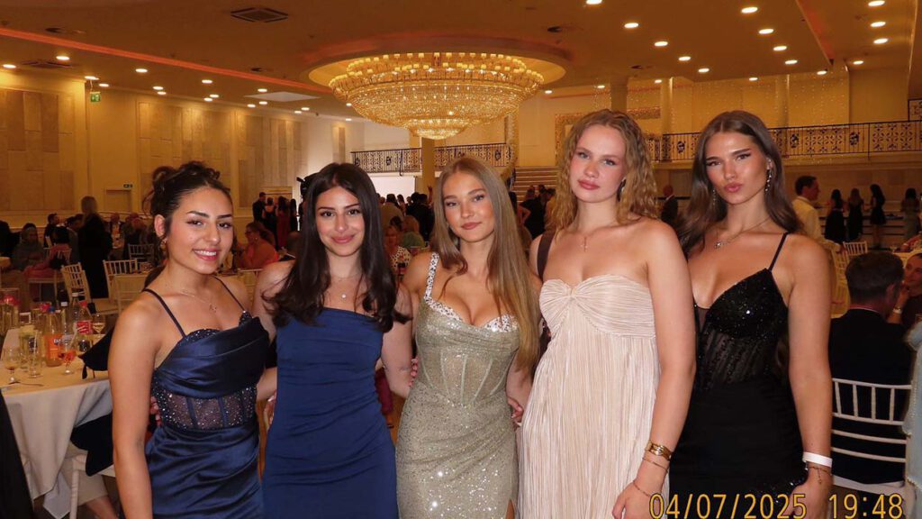 Goldener Abiball unterm Kronleuchter