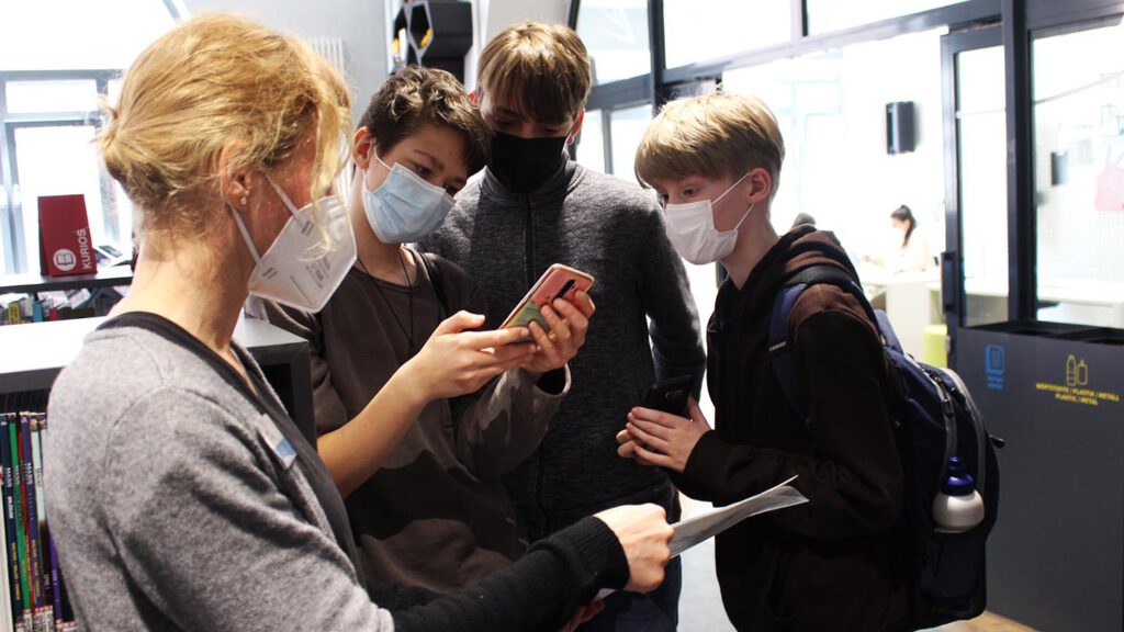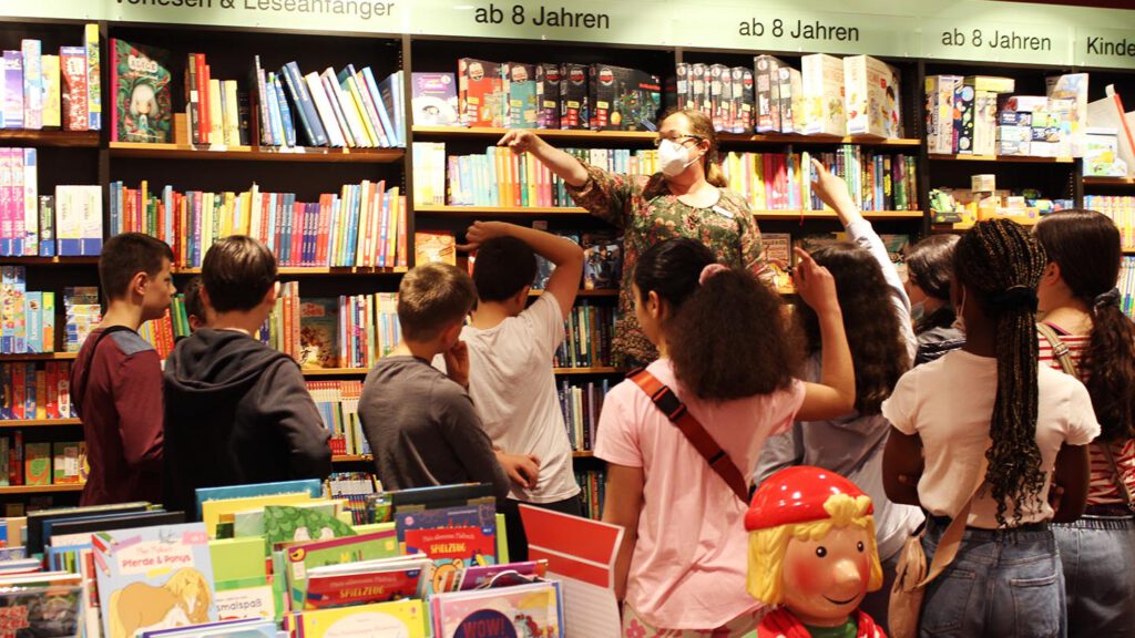 Dienstag, den 23. März 2022: Bei diesem wundervollen Wetter brach die Hälfte der Kursteilnehmer:innen des GTS-Kurses “Abenteuer Bibliothek – Klasse 6” mit Kevser…