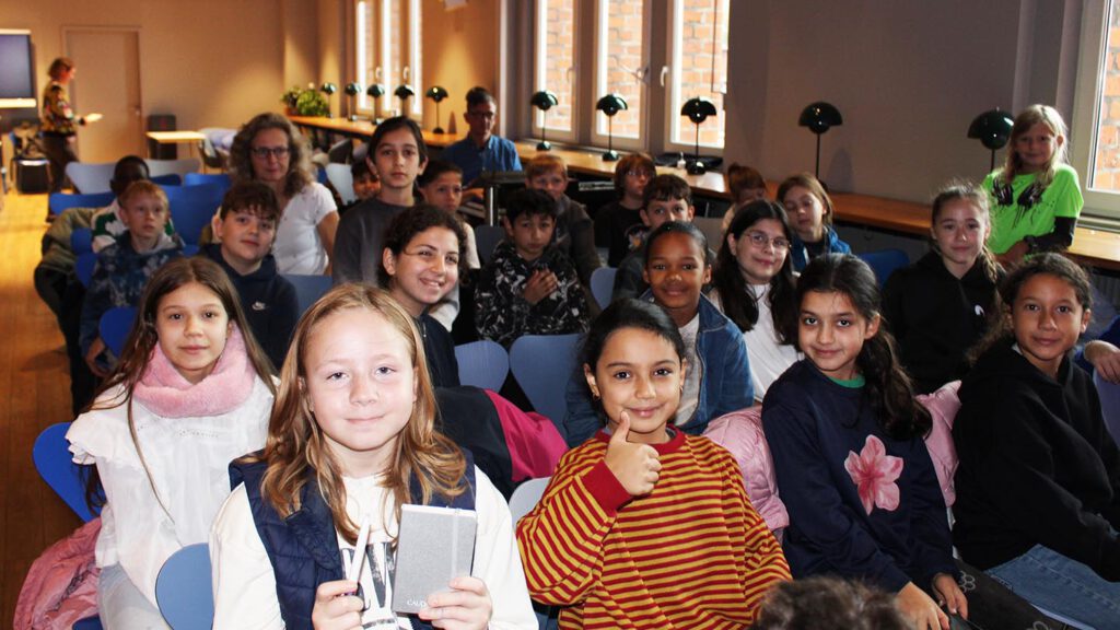 Montag, den 17. November 2025: Herr Zuber-Goos hatte für die Lesung “Aristide Ledoux – Meisterdieb wider Willen” das beste Wetter für seine Klasse…