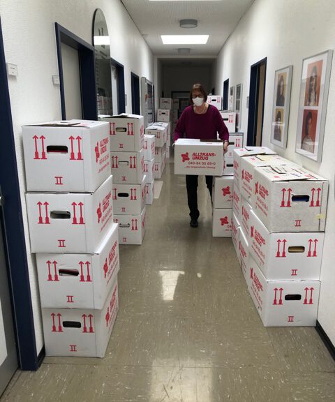 Goethe packt Kartons