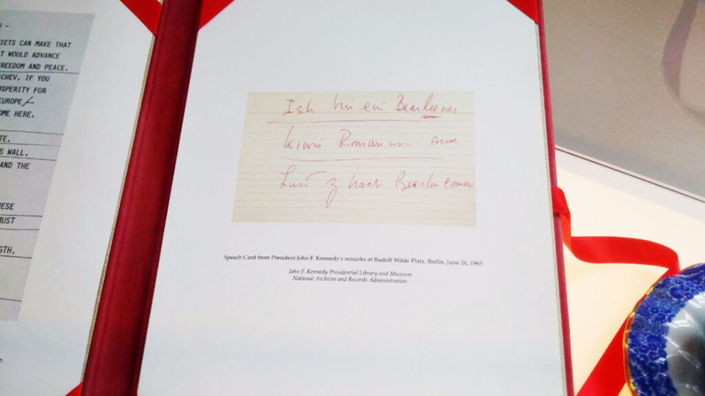 Ein 1 zu 1 Replik zu Kennedys berühmter „Ich bin ein Berliner“-Rede im Kanzleramt Donnerstag, 14, September 2017: Die Nächte scheinen kürzer zu…