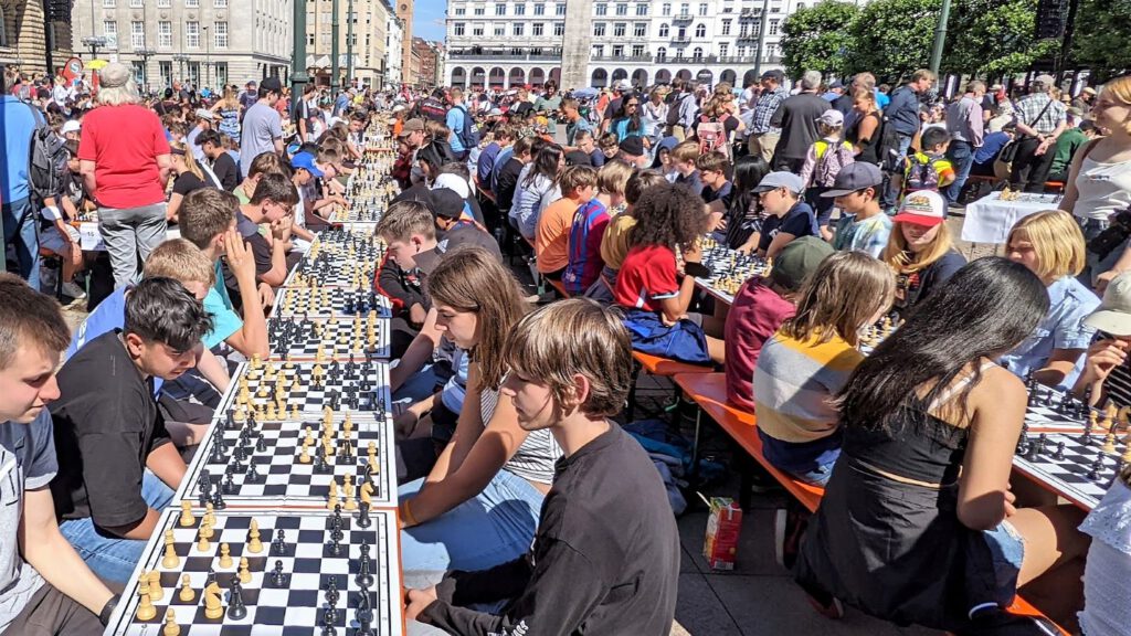 “Das Schachturnier gestern war echt cool. Wir waren auf dem Rathausmarkt und es waren über 2000 Spieler:innen da! Das Wetter war auch toll;…