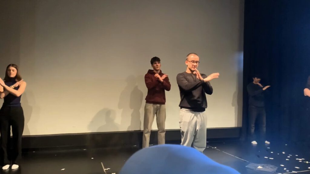 Donnerstag, den 10. April 2025: Endlich wieder so weit. Der Theaterkurs 12 (Spielleitung Frau Karstädt) führte im Theaterstudio am Goethe-Gymnasium die Eigenproduktion Über.Leben…