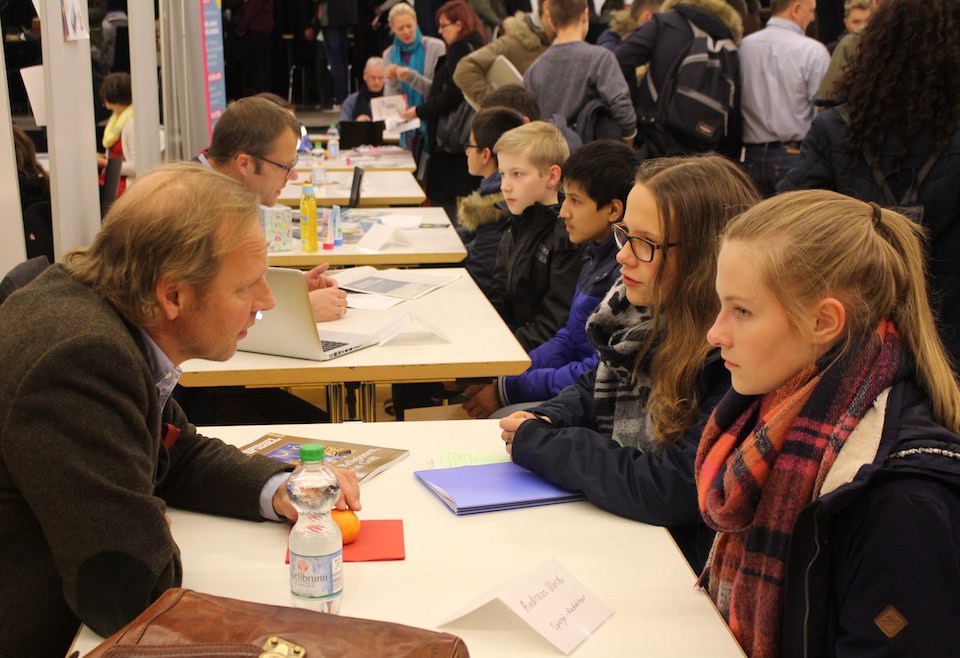 Ein herausragendes Ergebnis der erfolgreichen Zusammenarbeit zwischen Eltern und Schule ist die jährlich am Goethe-Gymnasium stattfindende „Berufsinfobörse“. Eltern und Ehemalige kommen als Experten für bestimmte Berufe, Ausbildungen und Studiengänge in die Schule und beantworten die Fragen unserer Schülerinnen und Schüler ganz persönlich und in kleinen Gesprächsrunden.