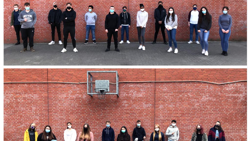 Willkommen zurück: die 10ten Klassen sind wieder eingeschult! Ohne Schultüte aber dafür mit Masken seht ihr hier die 10b von Fr. Götz: aufgeteilt…
