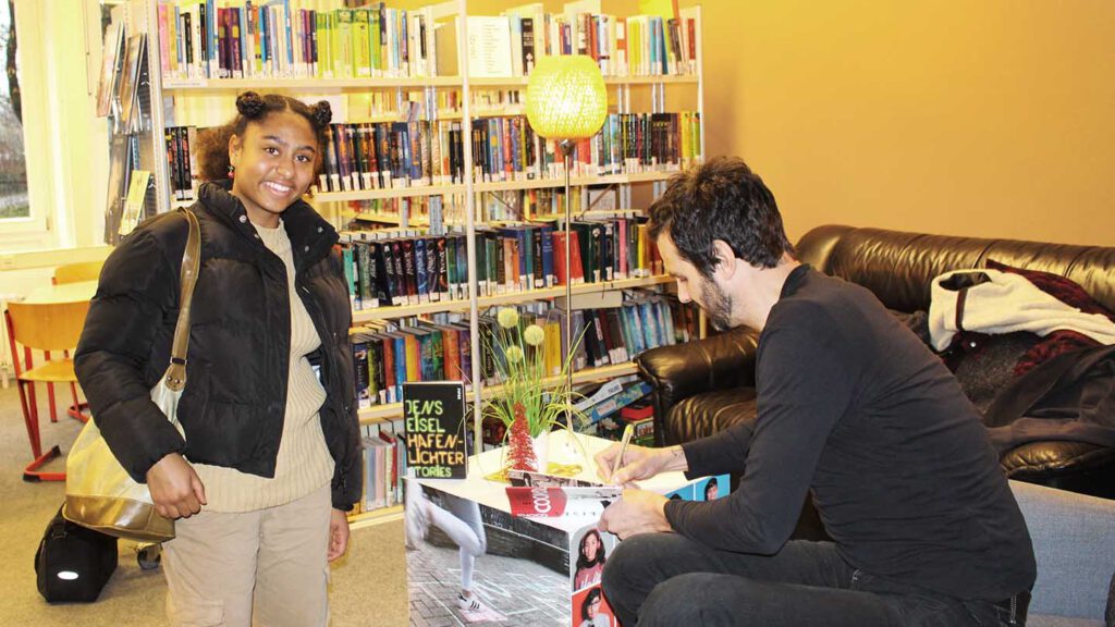 Freitag, den 15. Dezember 2023: Solch einen verspäteten Nikolaus hat die Klasse 9a in der Bibliothek gerne zu Besuch. Der Autor Jens Eisel…